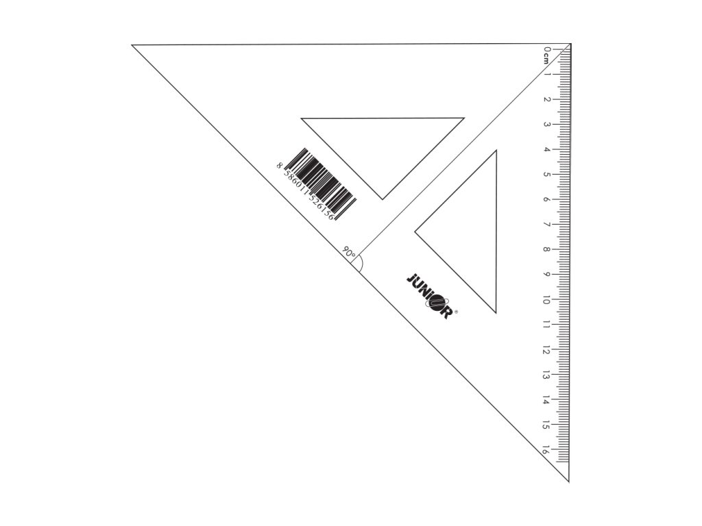 Trojúhelník s ryskou, s pravítkem na pravé odvěsně 16 cm, vyrobený z transparentního PVC. Kvaltný trojúhelník, který firma JUNIOR nabízí pod vlastní značkou.Doplňkové parametry