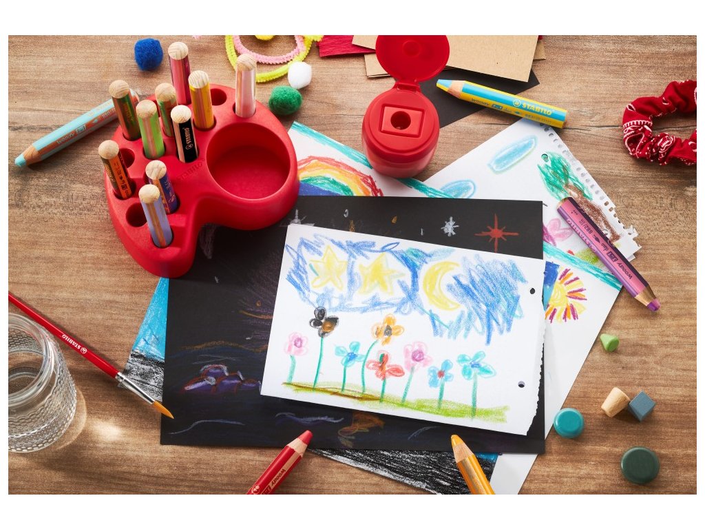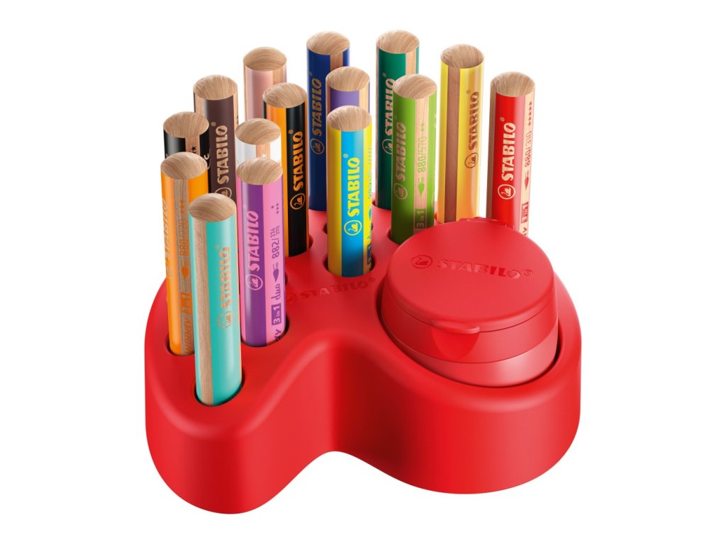 Sada s deseti standardními, dvěma pastelovými a třemi duo barvami pokrývá širokou škálu barev. Woody 3 in 1 můžete použít na mnoho povrchů: - bílý i tmavý papír - karton - sklo a dokonce i zrcadlo Sada obsahuje: 10x STABILO woody 3 in 1 2x STABILO woody 3 in 1 Pastel 3x STABILO woody 3 in 1 duo 1x Struhadlo se zásobníkem (vyměnitelný modul struhadla) 1x Stolní set Stolní set se skládá z minimálně 92 % biokompozitu na bázi PEFC certifikovaných materiálů.Doplňkové parametry