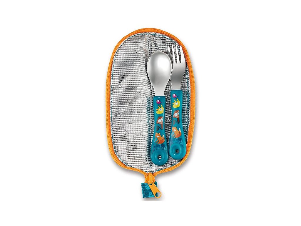 Sada obsahuje pouzdro, lžičku a vidličku.