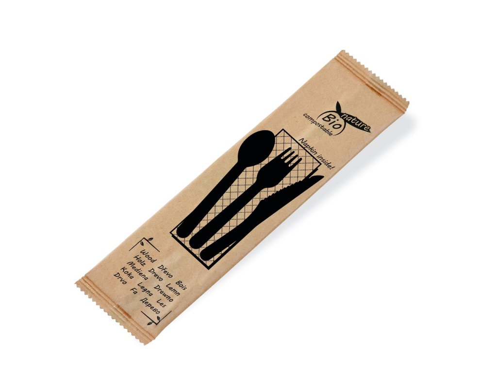 Příborová sada dřevěná nůž-vidlička-lžíce+ubrousek