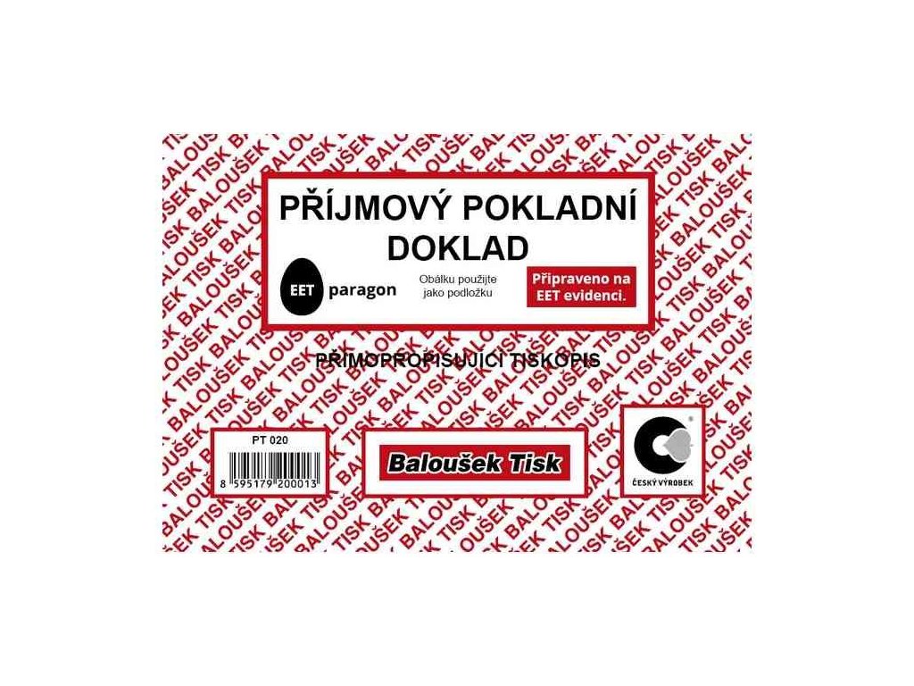 Příjmový pokladní doklad. Tiskopis je vyroben ze samopropisujícího papíru. Tisk vnitřních listů je červenou barvou.Doplňkové parametry