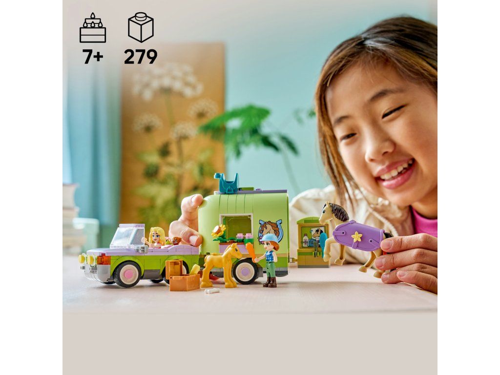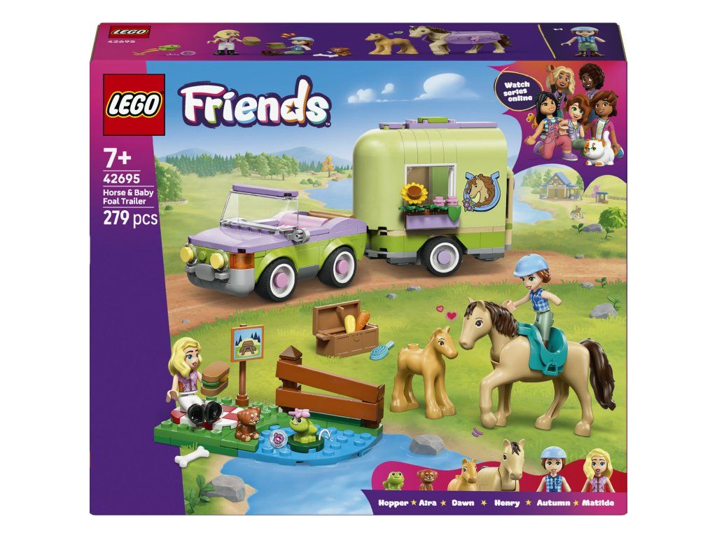 Děti od 7 let si se stavebnicí LEGO® Friends Přívěs s koněm a hříbětem (42695) užijí hodiny hraní na péči o zvířata. Tato stavebnice pro milovníky koní obsahuje 2 minipanenky a figurku koně, hříběte, štěněte a žáby. Vyzkoušejte si péči o zvířata spomocí propracovaných doplňků pro hřebelcování koní, přepravu v přívěsu a skákání přes překážky. Holky a kluci si s touto zvířecí stavebnicí užijí rozmanité způsoby hraní. Mohou si vymýšlet příběhy o Autumn a Matilde, které řídí auto. Otevřou přívěs, a by pozdravily koně a hříbě. Pak koně osedlají a připraví se na vyjížďku. Součástí je menší model s prostorem na piknik, rozcestníkem, jezerem a plotem, který lze přeskočit. Tato stavebnice představuje super dárek pro milovníky koní a zábavný dárekk narozeninám pro děti, které mají rády zvířecí hračky. S aplikací LEGO Builder si děti užijí intuitivní stavitelský zážitek. Můžou v ní přibližovat a otáčet modely ve 3D, ukládat stavebnice a sledovat postup stavění. Stavebnice obsahuje 279 dílků.Doplňkové parametry