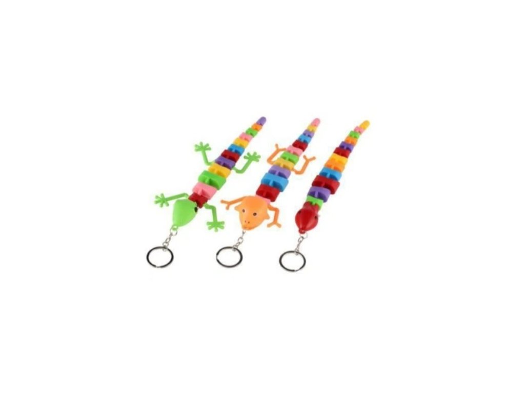 Skvělý přívěsek na klíče nebo batoh ve tvaru ještěrky. Když se stiskne tlačítko na obličeji, začne v tlamě ještěrka blikat. Ještěrka je plastová s pohyblivým tělem, na 2 x LR41 bateriích, které jsou vloženy. Velikost ještěrky: přibližně 28 cm Vhodná od 3 let. Dodáváme podle aktuální dostupnosti skladu. Pokud máte zájem o konkrétní barvu, uveďte ji prosím v poznámce v objednávce. Budeme se snažit vám vyhovět. Cena za kus.Doplňkové parametry