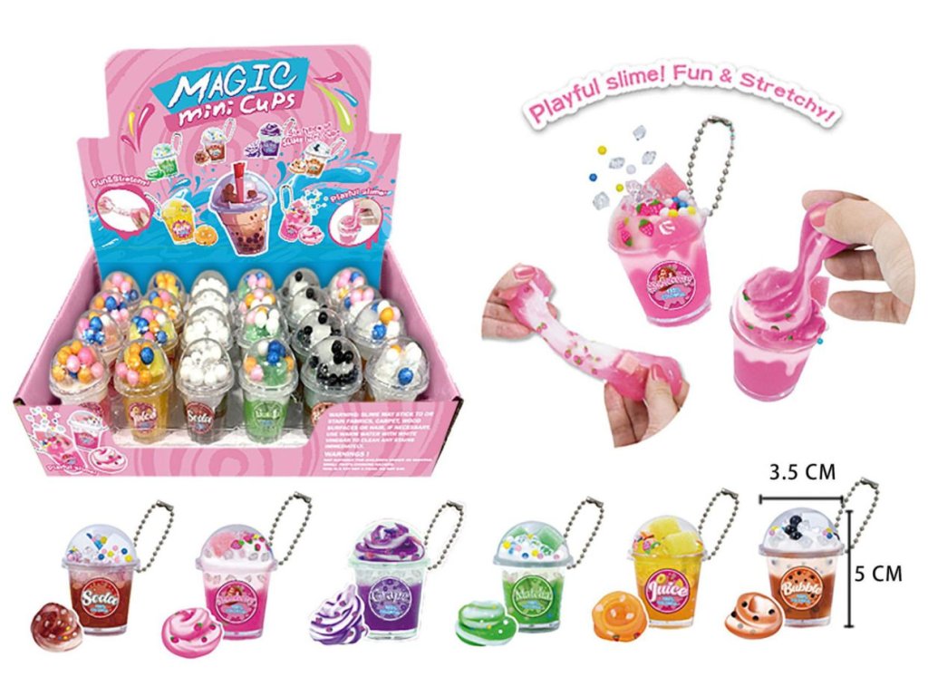 Originální mini sliz v pohárku ve tvaru oblíbených nápojů. Každý kelímek má průhledné víčko, barevný sliz a drobné dekorace, které vypadají jako kuličky, ovoce nebo pěna. Navíc je pohárek opatřen kovovým řetízkem, takže si ho děti mohou připnout na klíče, batoh nebo penál. Sliz je měkký, pružný a zábavný na mačkání a natahování. Díky malému balení je ideální jako drobný dárek, pozornost nebo sběratelský kousek. Rozměry výrobku 4 x 5 x 4 cm. Vhodné pro děti od 3 let. DO OBJEDNÁVKY UVEĎTE VYBRANÝ DRUH.Doplňkové parametry
