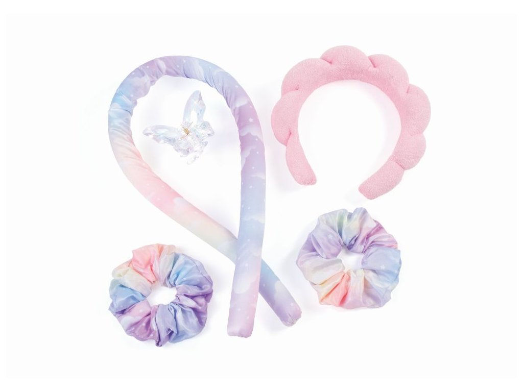 Nádherné kadeře bez tepla nebo poškození vlasů! Snadno nastavte bezteplotní kulmu pomocí přiložených scrunchies, odpočívejte u televize, dělejte domácí úkoly nebo si odpočiňte... poté kulmu sejměte a odhalte plážové vlny bez námahy! Udělejte si styl s barevnými křupkami a/nebo motýlí sponou a použijte super trendy nadýchanou čelenku, aby vám vlasy nepřekážely při mytí do postele.Doplňkové parametry