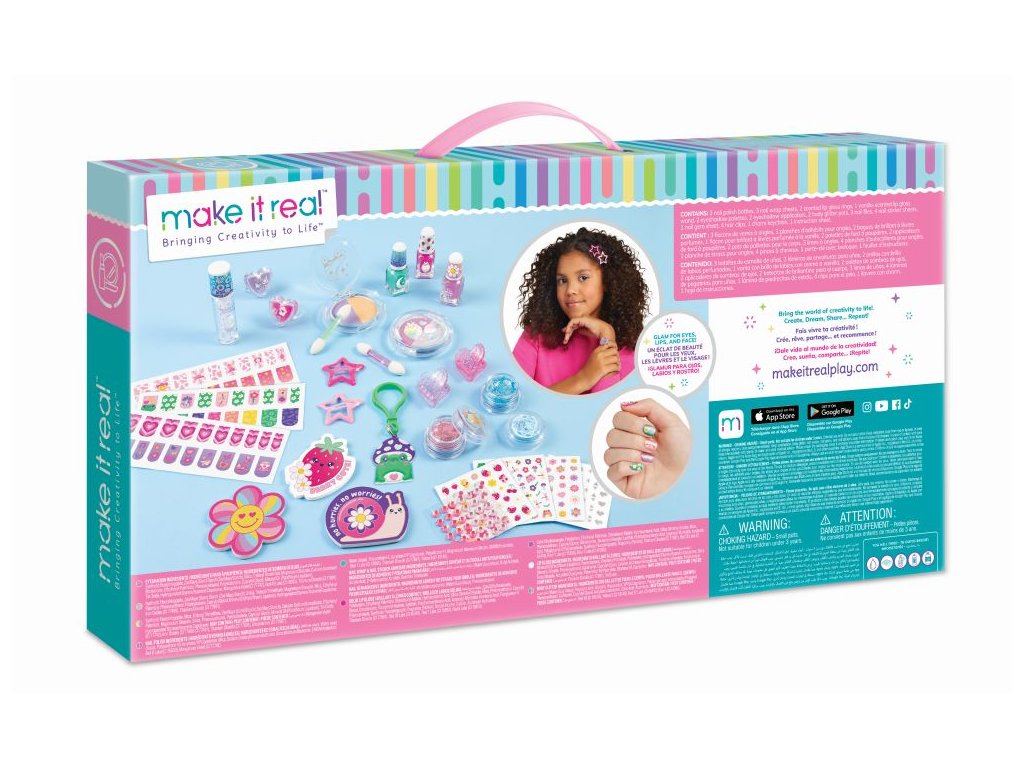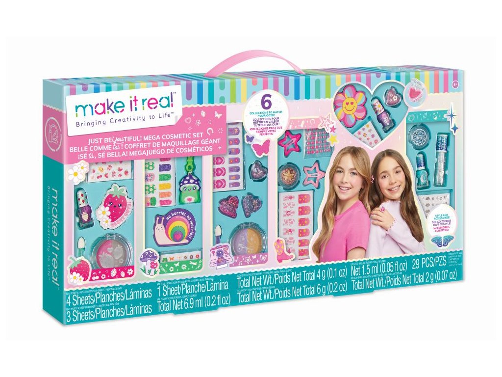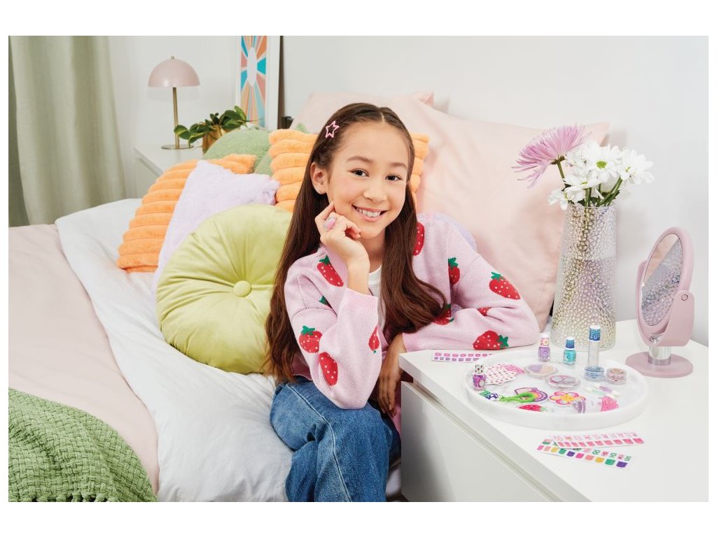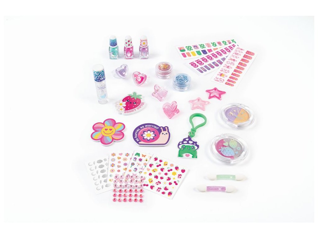 S touto mega kosmetickou sadou jsou možnosti nekonečné! S touto kosmetikou a doplňky uspořádanými do šesti tematických kolekcí existuje styl pro každou náladu nebo outfit dne: jahoda, roztomilá zvířátka, nostalgie, nazdar, láska a magie! Obsahuje oční stíny, tělové třpytky, lesk na rty a vše potřebné k vytvoření nádherného mani-pedisu, včetně laků na nehty, zábalů na nehty, pilníků, nálepek na nehty a drahokamů na nehty. Dva vonné prsteny s leskem na rty slouží jako elegantní doplněk a kosmetika, kterou si můžete vzít na cesty. Objevte čtyři sponky do vlasů a přívěsek na klíče pro extra zábavné doplňky. Perfektní jako úvod do make-upu pro doplnění. Tato sada je skvělým nápadem na dárek k narozeninám, svátku nebo jen tak! Veškerá kosmetika je testována na bezpečnost pro děti od 8 let.Doplňkové parametry