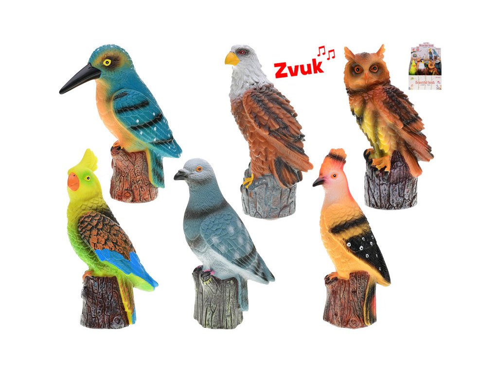 Pták se zvukem. Vybírat můžete ze šesti různých variant. Rozměr: 17 - 20 cm Materiál: plast Druhy: orel, sova, ledňáček, korela, holub, papoušek Na baterie: 3x AG13 (jsou součástí balení) Cena za 1 kusDoplňkové parametry