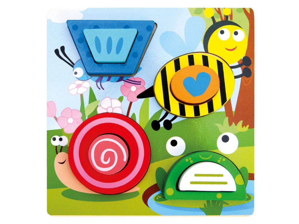 První barevné puzzle pro naše nejmenší. Děti mohou po částech skládat veselá zvířátka u rybníka. Díky robustním dřevěným dílkům se puzzle snadno uchopují a používají. Roztomile navržená skládačka hravou formou podporuje rozpoznávání a pojmenovávání barev a zvířat. Trénuje jemnou motoriku a schopnost rozlišovat velikosti a tvary. Při hře si děti mohou procvičovat koordinaci rukou a zlepšovat praktickou inteligenci a kognitivní dovednosti. Věk: od 3 let, rozměry výrobku: 18x18x2,5 cmDoplňkové parametry