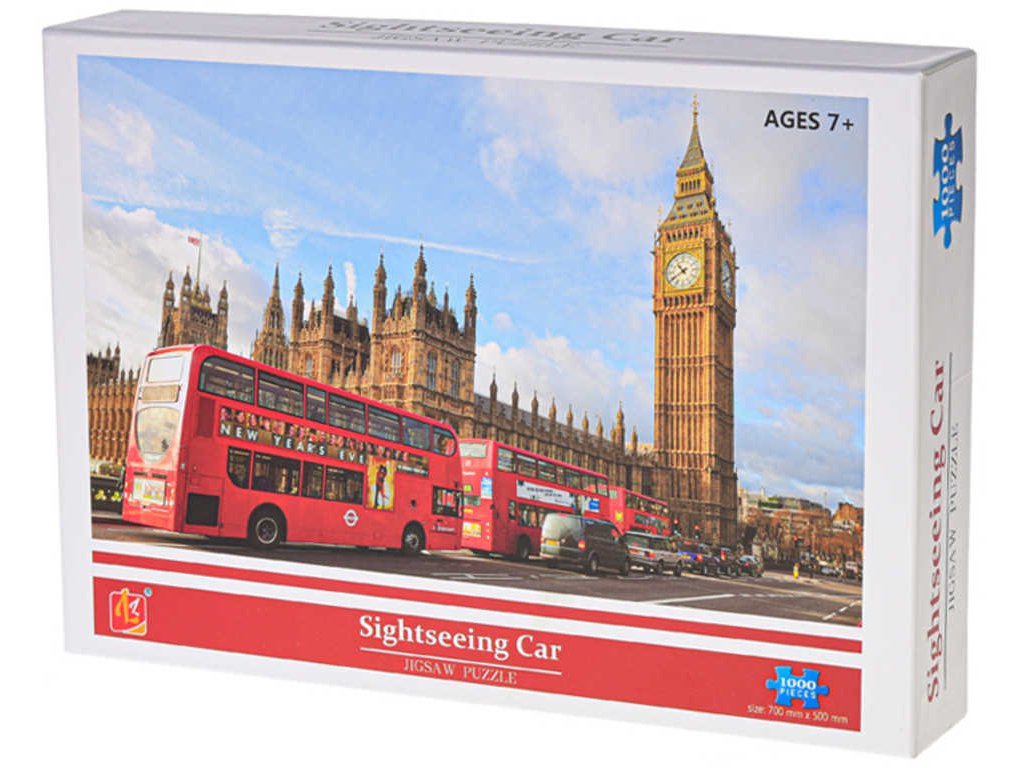 PUZZLE 1000 dílků Doubledecker 70x50cm. Puzzle skládačka ze které si můžete sestavit foto motiv Londýna se svými typickými dvoupodlažními autobusy - doubledeckery. Baleno v krabici. Skládání puzzle je oblíbená zábava. Puzzle můžete složit, znovu rozebrat a později si to zopakovat nebo obrázek třeba slepit a použít jako dekoraci na stěnu. Puzzle je hra oblíbená napříč věkovýmiskupinami - oblíbily si ji,jak děti, tak i zkušení mistři ve skládání. Puzzle v rámečku je velmi oblíbené u nejmenších dětí. Rozměry balení (š v h): 29 x 19,5 x 5cmRozměry složeného obrázku (š v): 70 x 50cmMateriál: tvrdý kartonPočet dílků: 1000Doplňkové parametry