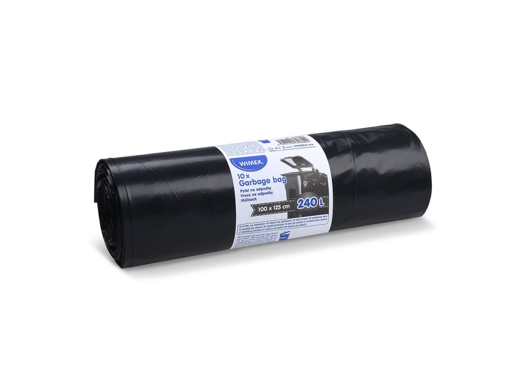 Pytle na odpad 240 l LDPE, Typ 80 černé 100 x 125 cm. 1 role = 10 ks. Tloušťka 60 mic.Doplňkové parametry