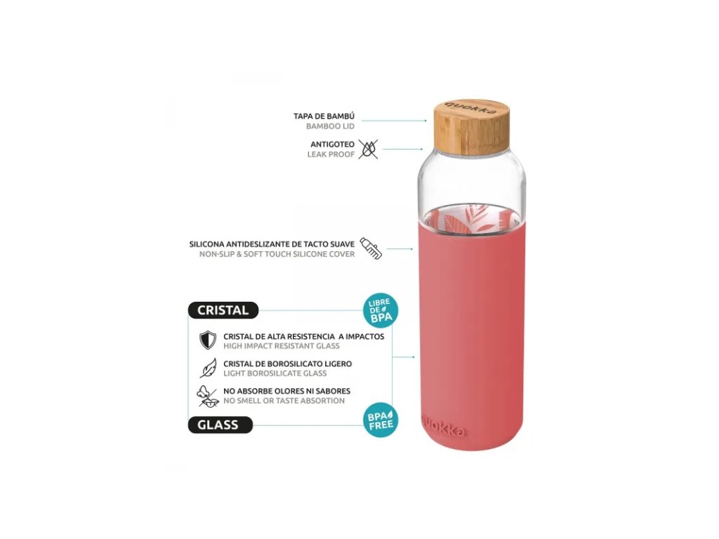 Quokka Flow je vyrobena z prémiové kvality odlehčeného brosilikátového skla, které je známé svojí výjimečnou odolností vůči nárazům. Díky tomu si můžete vychutnat svůj oblíbený nápoj bez obav z rozbití láhve. Sklo navíc nepřijímá žádné vůně ani chutě, takže si můžete být jisti, že každý doušek bude chutnat přesně tak, jak má.