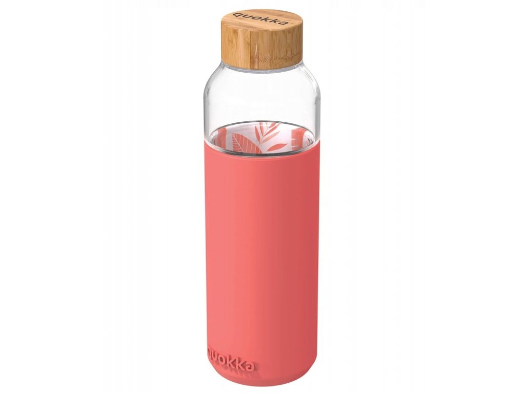Quokka Flow, Skleněná láhev se silikonovým povrchem PINK BOTANICAL, 660ml, 40006
