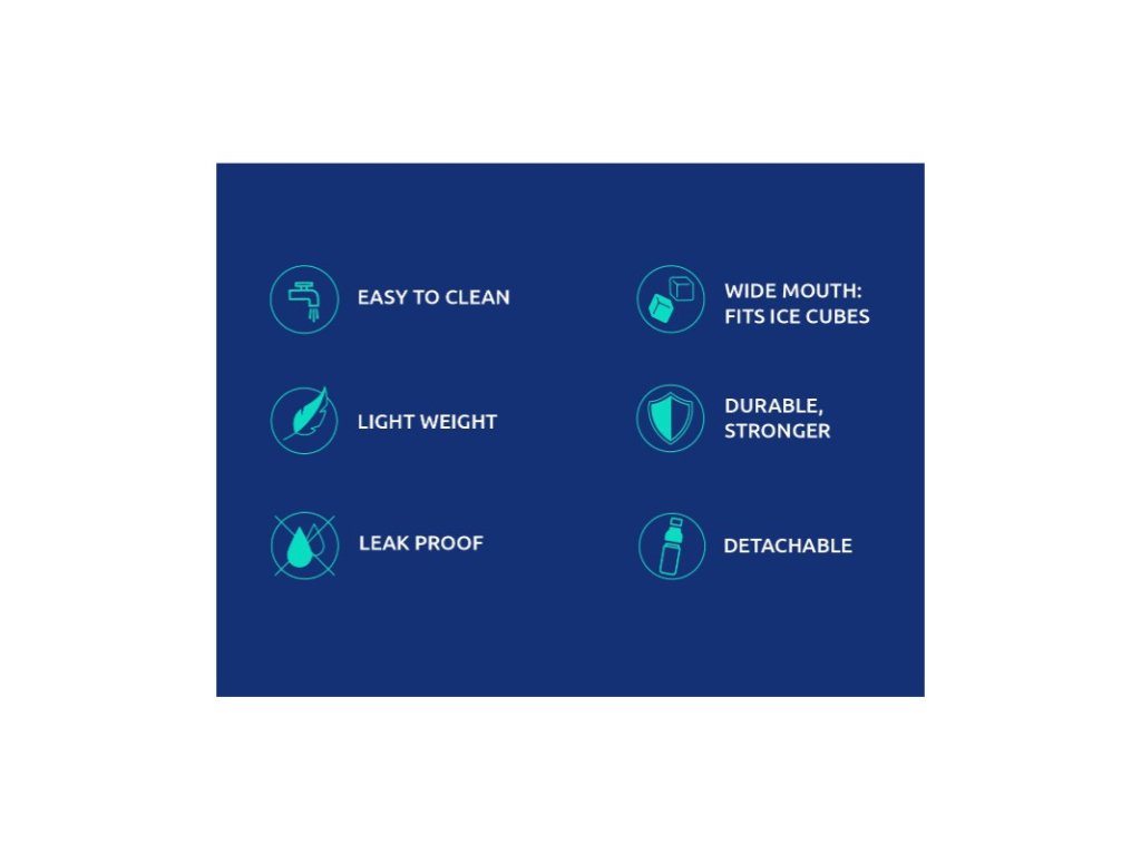 Kvalitní plastová láhev na pití o objemu 720ml. Díky dvojitému otevírání můžete do nápojů přidávat kostky ledu nebo ovoce a zároveň se snadno čistí.