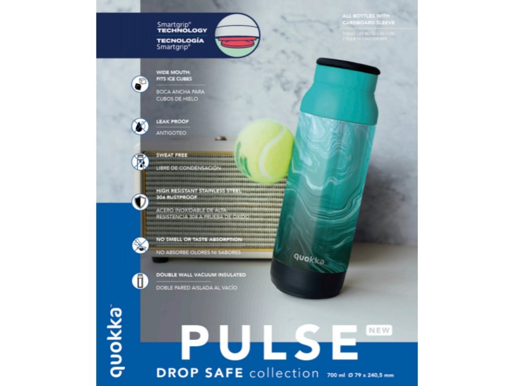 Nerezová láhev 700 ml s vakuovou izolací. Udrží nápoj studený 16 h, s ledem 48 h, horký 12 h. Technologie Smartgrip® zabraňuje převrhnutí. Široké hrdlo, silikonové poutko, nepropustný uzávěr. Rozměry 79 × 240,5 mm. Odolná ocel 304, bez BPA.