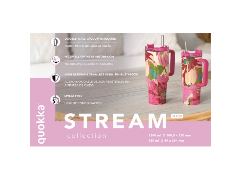 Quokka STREAM 950 ml – nerezová termo sklenička s pohodlným uchem, brčkem a možností dvou způsobů pití. Elegantní řešení pro každodenní hydrataci v práci, škole i na cestách. 💼🧃