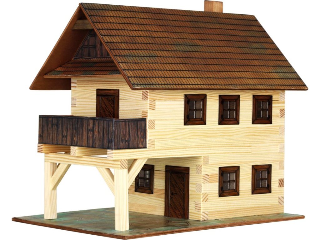 Dřevěná stavebnice pro lepení Walachia - Vodní mlýn. Slepovací stavebnice Walachia jsou dřevěné modely domků a staveb z Valašského kraje v měřítku 1:32. Základem jsou dřevěné hranolky 9x9 mm a k tomu jsou v sadě vždy všechny papírové doplňky - okna, dveře, střešní části a podobně. K lepení se používá lepidlo Herkules, není však součástí balení. Přiložen je montážní návod a malé kapitoly z historie lidové architektury. Níže je označení náročnosti číslem 1 - 5, přičemž 1 je nejlehčí. Rozměry: 24 x 18 x 22 cm. Počet dílů stavebnice: 196, Náročnost: 5.Doplňkové parametry