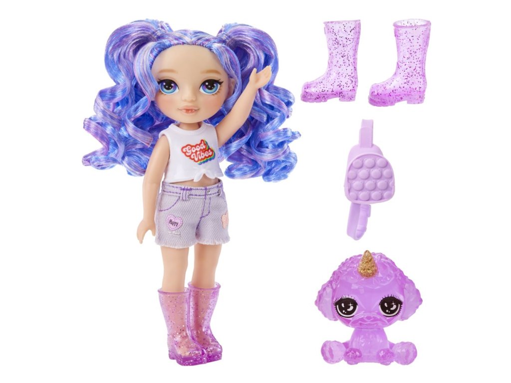 Seznam se s malými sestřičkami oblíbených Rainbow High panenek. Tyto rozkošné malé panenky mají svůj vlastní styl, účes, kabelky a dokonce i mazlíčka. Některé sestřičky jsou podobné velkým Fashion panenkám a některé mají vlastní výraznou osobnost. Obsah balení: • 1 panenka s 5 pohyblivými klouby • 1 outfit podtrhující individualitu panenek • 1 pár bot • 1 kabelka • 1 mazlíček (kočička nebo pejsek)Doplňkové parametry