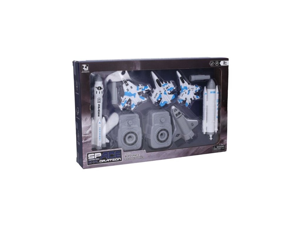 Raketa s odpalovací plošinou 17,5 cm set. Obsah balení - 2x odpalovací plošina, 2x nástavec na odpalovací plošinu, raketa na raketoplán 14 cm, raketa 17,5 cm, raketoplán na zpětné natažení 10 cm, 3x stíhačka na zpětné natažení 9 cm. Raketoplán je možné připevnit na jednu z raket. Vystřelovací plošina - na plošinu umístěte nástavec, na nástavec nasuňte raketu, uslyšíte cvaknutí, tlačítkem na plošině vystřelíte raketuDoplňkové parametry
