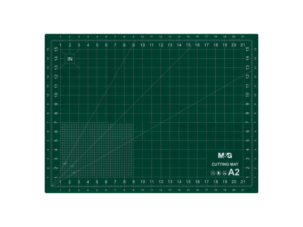 Stříhací podložka A2 s potiskem v měřítku, ideální pro lidi s kreativním cítěním, která umožní měřit délky prvků a úhlů. Tento produkt je určen pro modeláře, krejčích, designérů, kutily a řemeslníky i studentů např. polytechniky. Podložka je vhodná i ve školních třídách a poskytne vynikající ochranu povrchu stolu, na kterém budou prováděny technické práce. Zelená rohož má protiskluzový povrch a je ideální pro řezání různých materiálů, jako jsou karton nebo tkanina.Doplňkové parametry