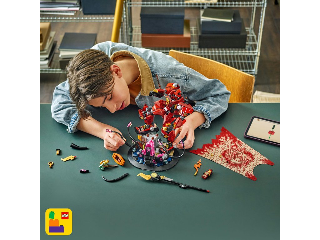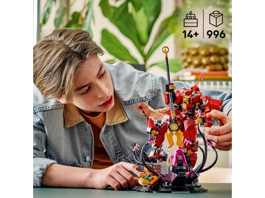 Starší fanoušci NINJAGO® od 14 let rozšíří svou sbírku modelů LEGO® NINJAGO o úžasnou a propracovanou stavebnici Robot ohnivého rytíře (71846). Stavebnice obsahuje dramatickou scénu robota v plášti a s kopím v ruce, který bojuje s prastarou příšerou, která se vynořuje z moře. Model se bude skvěle vyjímat na výstavce v pokoji. Fanoušci nindžů můžou vyjmout model ze základny a připomenout si scény ze seriálu NINJAGO Legends Příšernost. Robot má pohyblivé funkce a mořská příšera má pohyblivá chapadla. Součástí modelu jsou také 2 minifigurky NINJAGO: Kai s kouzelným mečem, kterého lze umístit do hrudi robota, a rybář s pádlem v loďce. V ostatních stavebnicích z řady LEGO NINJAGO (prodávají se samostatně) najdete draky, vozidla a chrámy a fanoušci si užijí hodiny zábavného hraní se svými oblíbenými hrdiny. Aplikace LEGO Builder vám ukáže snadnou a intuitivní cestu stavitelským dobrodružstvím pro skládání nindžovského modelu. Stavebnice obsahuje 996 dílků.Doplňkové parametry