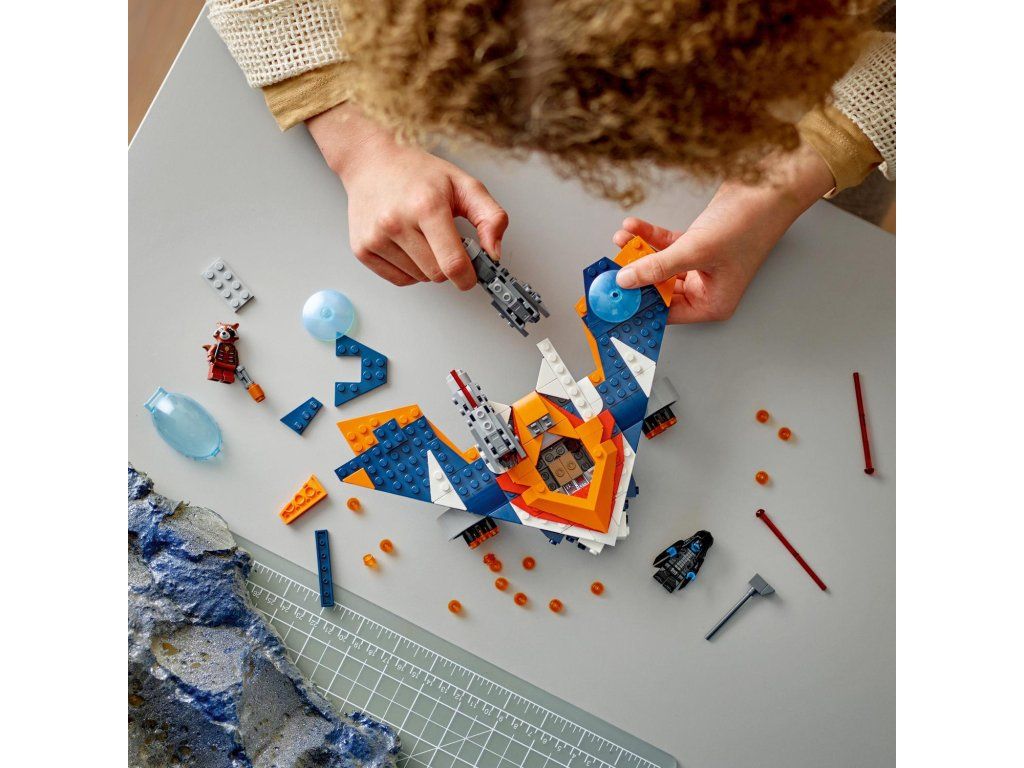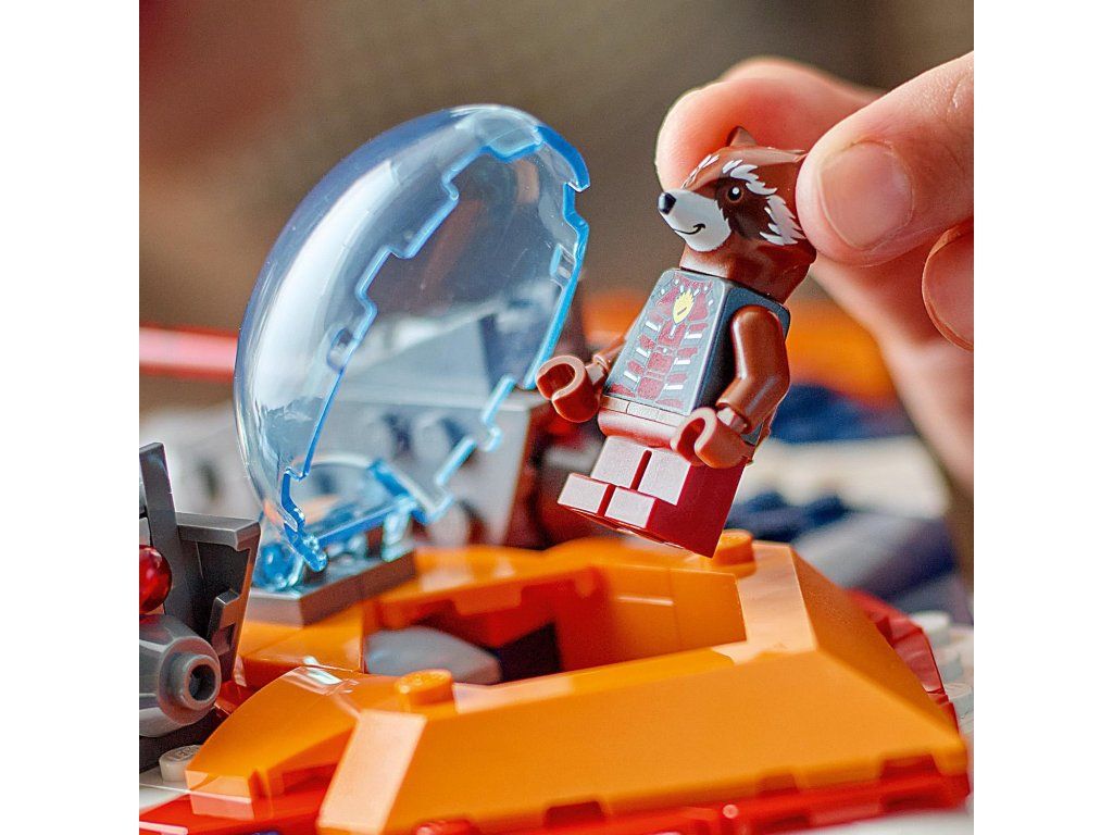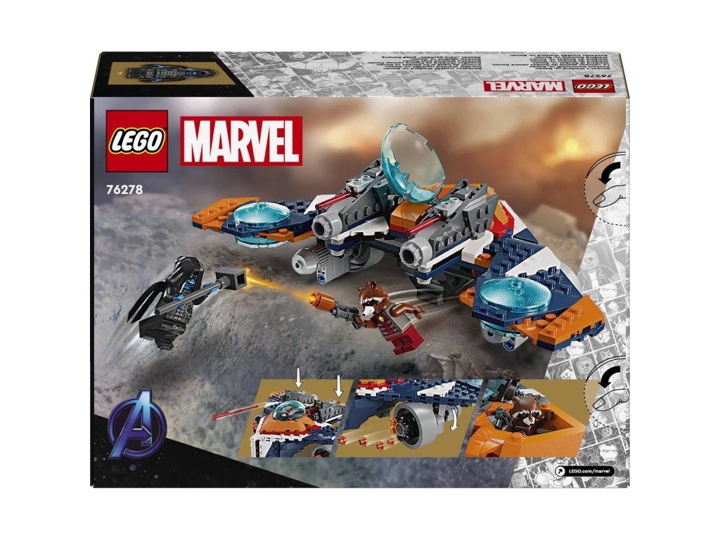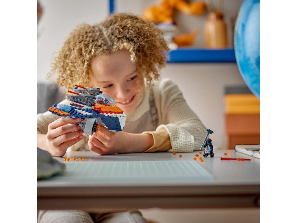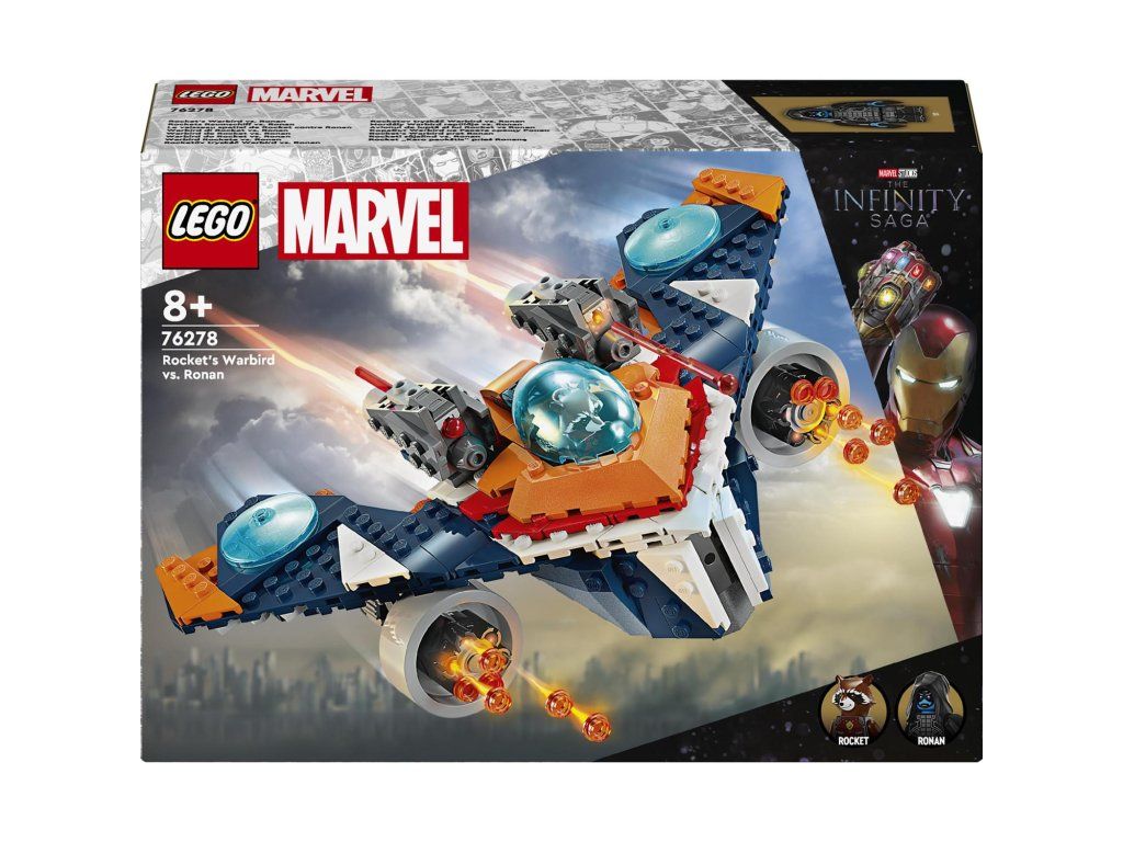 Malí superhrdinové si přímo zamilují stavebnici LEGO® Marvel (76278) Rocketův tryskáč Warbird vs. Ronan. Představuje super dárek pro děti od 8 let, které si s ní připomenou bitvu o Xandar z filmu Strážci galaxie od studia Marvel a vydají se s ní také na vlastní nekonečná dobrodružství. Stavebnice inspirovaná filmem Strážci galaxie od studia Marvel představuje skvělý dárek pro milovníky filmů, letounů a sestavitelných hraček s motivem superhrdinů. Součástí tryskáče je otevírací kokpit s prostorem pro minifigurku, 2 pružinové vystřelovače nahoře a supersilný 6násobný vystřelovač pod oběma křídly. Nechybí ani 2 minifigurky: Rocket s Blasterem a Ronan Žalobce s mocným kladivem Cosmi-Rod. Pro ještě více digitální zábavy je zde zábavná a intuitivní aplikace LEGO Builder, kde mohou stavitelé přibližovat a otáčet modely ve 3D a sledovat postup.Doplňkové parametry