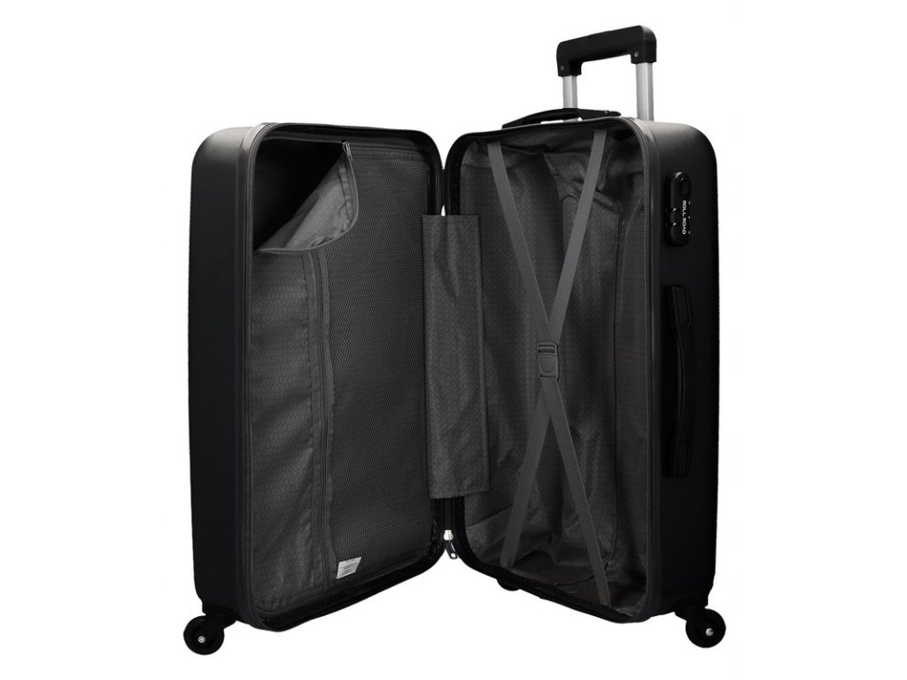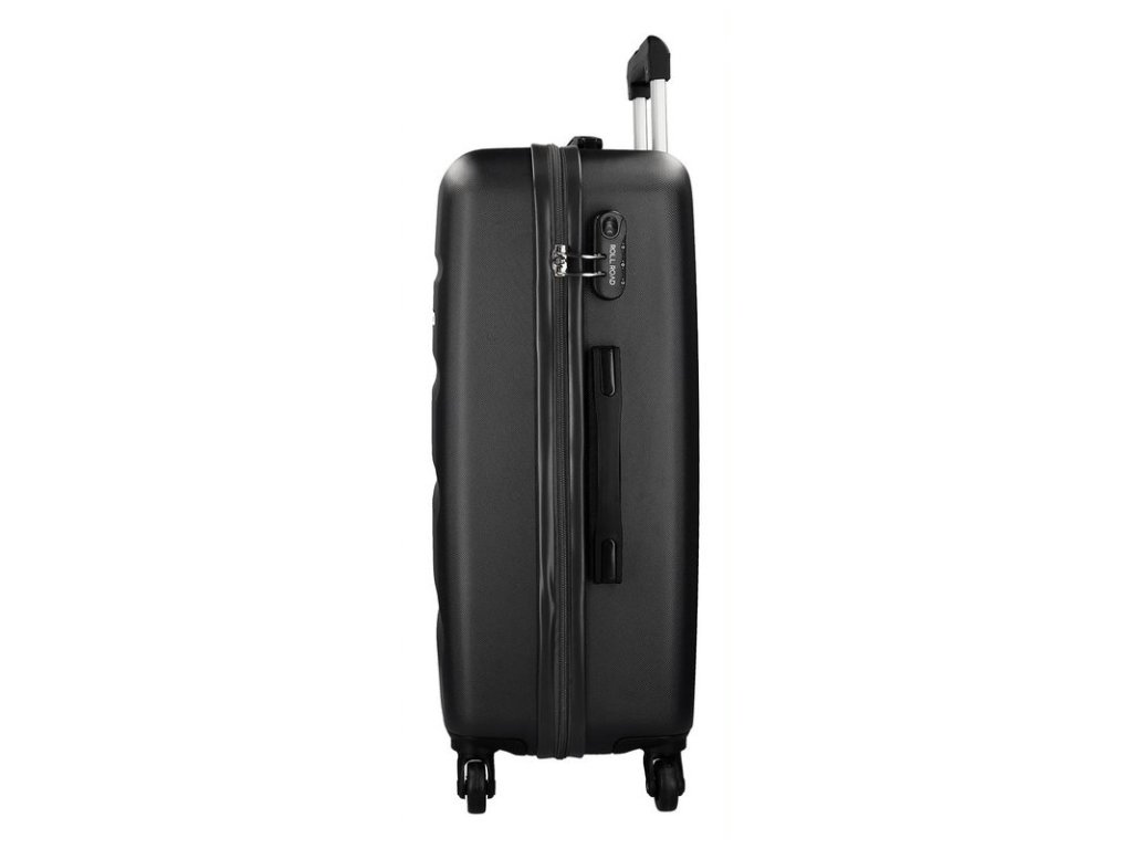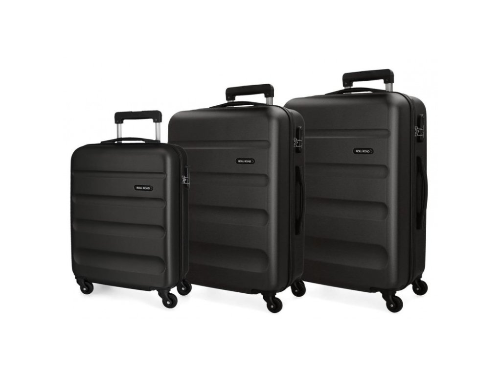 Sada cestovních kufrů ROLL ROAD Flex Black v elegantní černé barvě s moderním designem a praktickými funkcemi. Vyrobeno z ABS plastu s otočnými kolečky o 360° pro pohodlnou manipulaci. 🖤🧳