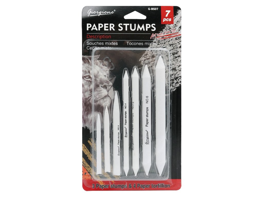 7 kusová sada papírových roztěrátek z pevného srolovaného papíru vhodná pro všechny druhy kresby a výtvarné techniky.