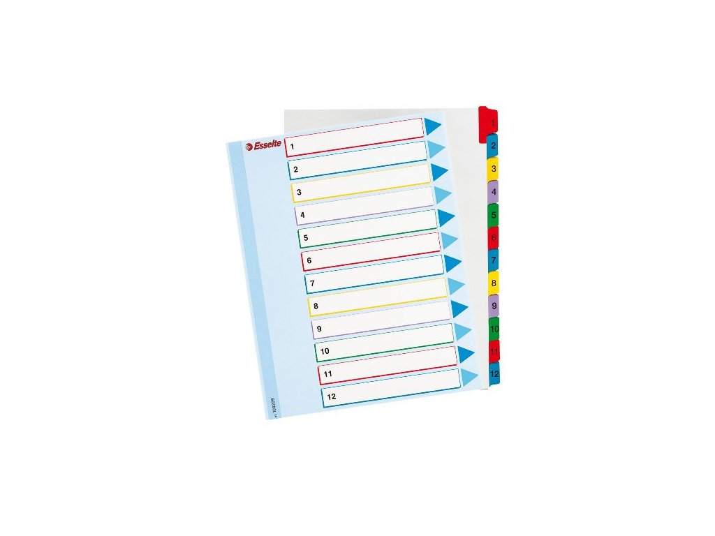 Zosilnené rozraďovače Esselte Mylar rozšíreného formátu A4 Maxi z kvalitného, silného kartónu, jednotlivé stránky v rôznych farbách. Na číselné triedenie dokumentov. Multiperforácia umožňuje použitie rozlišovača v krúžkovom aj pákovom poradači. Titulný list s možnosťou opakovaného popisu. Jednoduchá orientácia v zakladaných dokumentoch. Formát A4 Maxi umožňuje využitie rozraďovača pri ukladaní dokumentov v prospektových obaloch.Doplňkové parametry