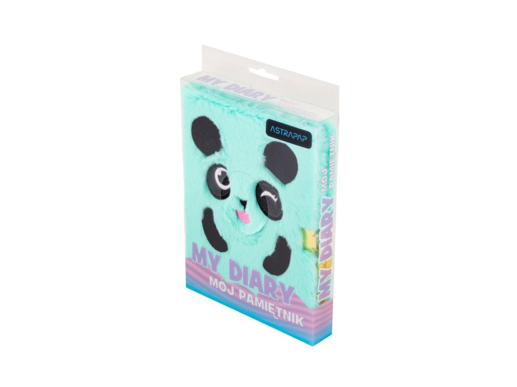 Roztomilý zápisník ASTRAPAP MINTY PANDAS formátu A5 s motivem pandy. Obsahuje 96 listů linkovaného papíru (70g) a praktický zámek s klíčkem. Ideální pro zapisování tajemství a poznámek.