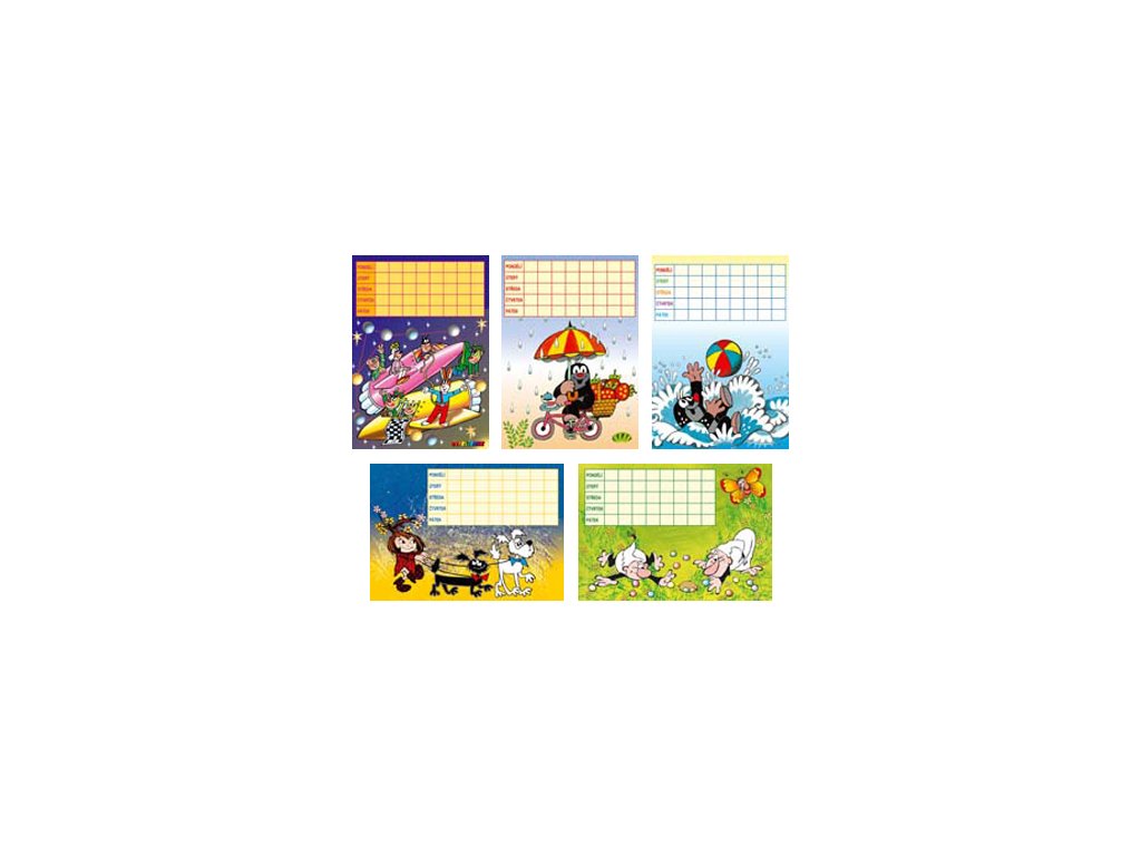 Podložka pro psaní s rozvrhem hodin v různých motivech.