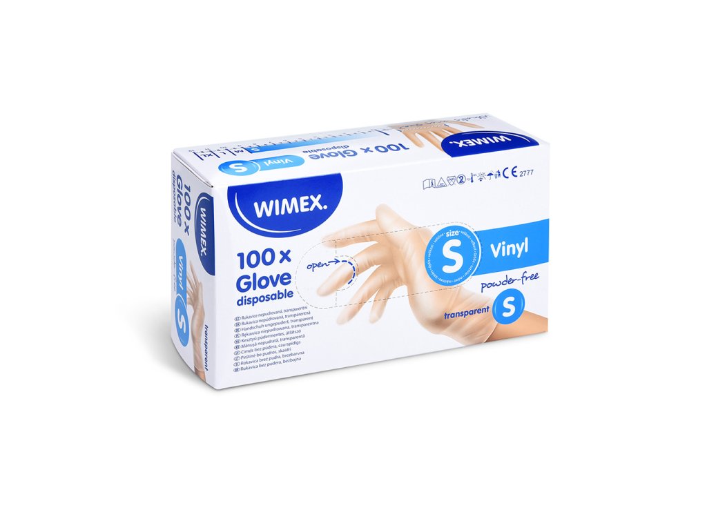 Rukavice vinilové bílé, nepudrované S (100 ks v bal.)