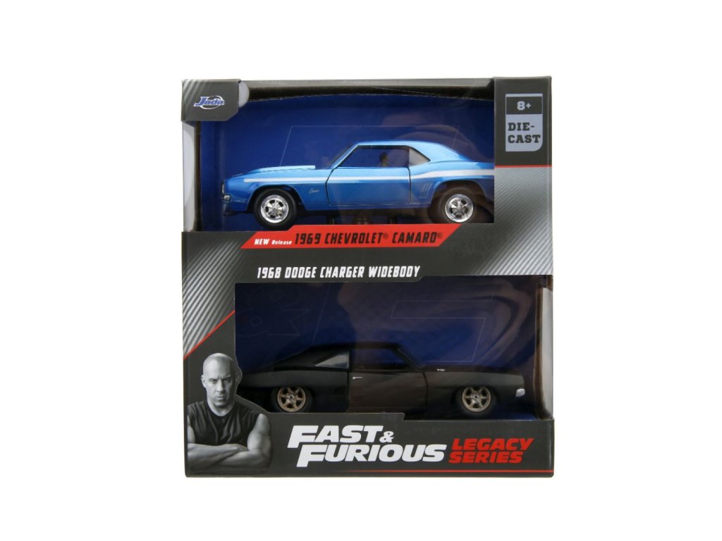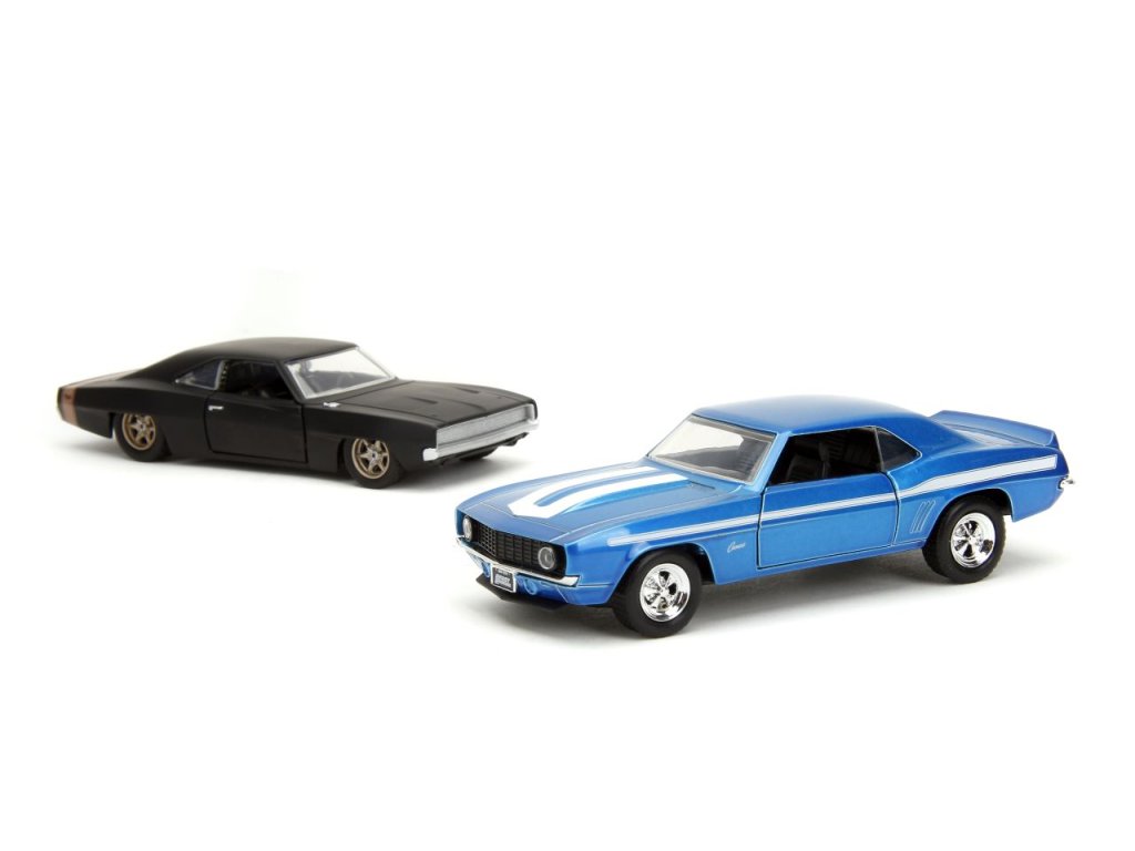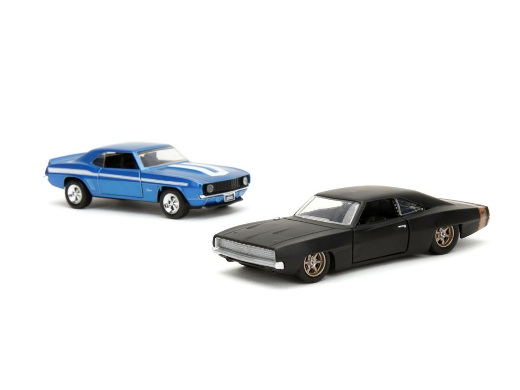 Kovové modely aut z filmu Rychle a zběsile ve dvojbalení - Chevrolet Camaro 1969 a Dodge Charger Wide Body 1968, volnoběh, otevírací dveře, měřítko 1:32, velikost 13 cm. Wave 2/1.Doplňkové parametry
