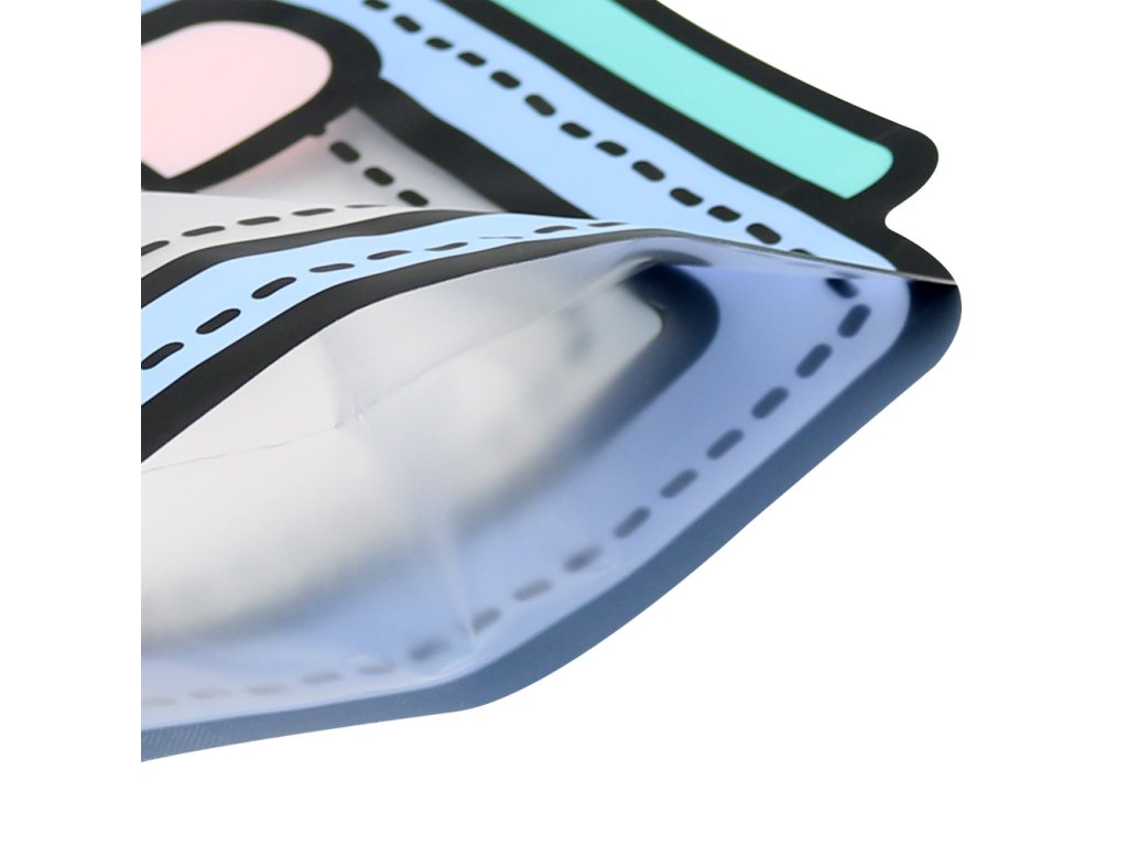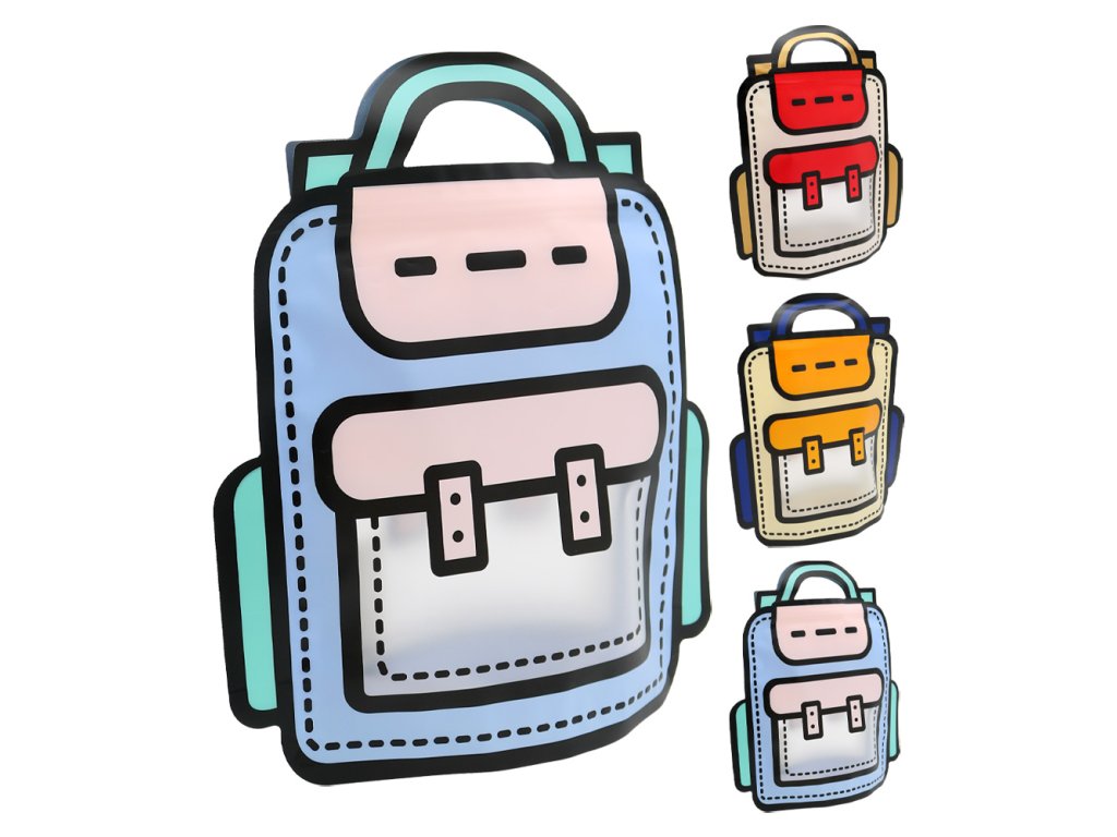 PVC mini taška s uchem v podobě školní aktovky s rychlouzavíratelným zipem v horní části.