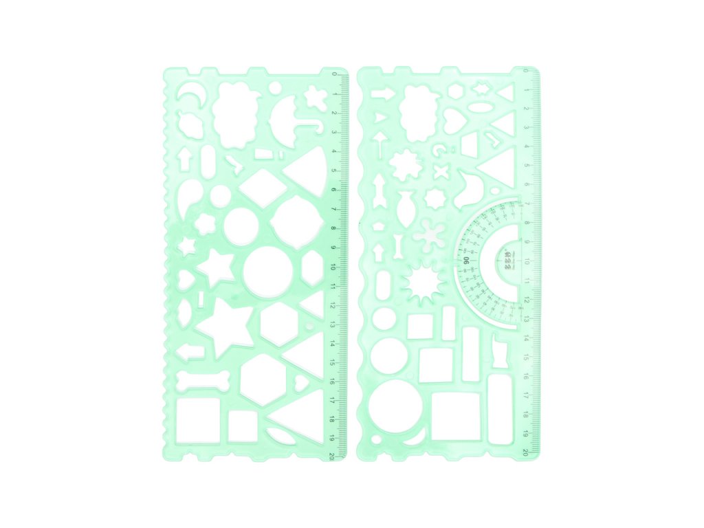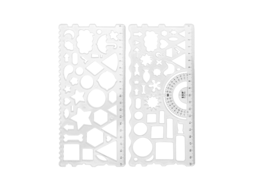 - obsahuje různé tvary + pravítko do 20 cm + úhloměr
