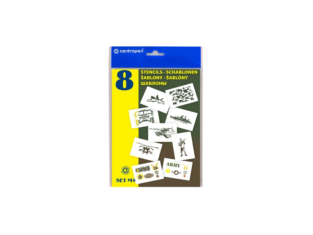 Šablony papírové CENTROPEN 9996 / M Motivy vojenské, sada 8 ks
