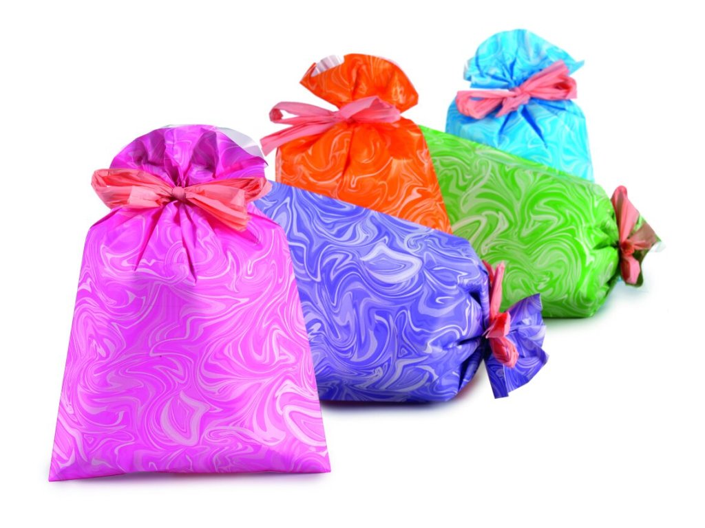 Celofanový sáček o velikosti 25x40 cm Design Mramor. 5 barevných variant (fialový, modrý, oranžový, zelený, růžový). Cena za 1 ksDoplňkové parametry