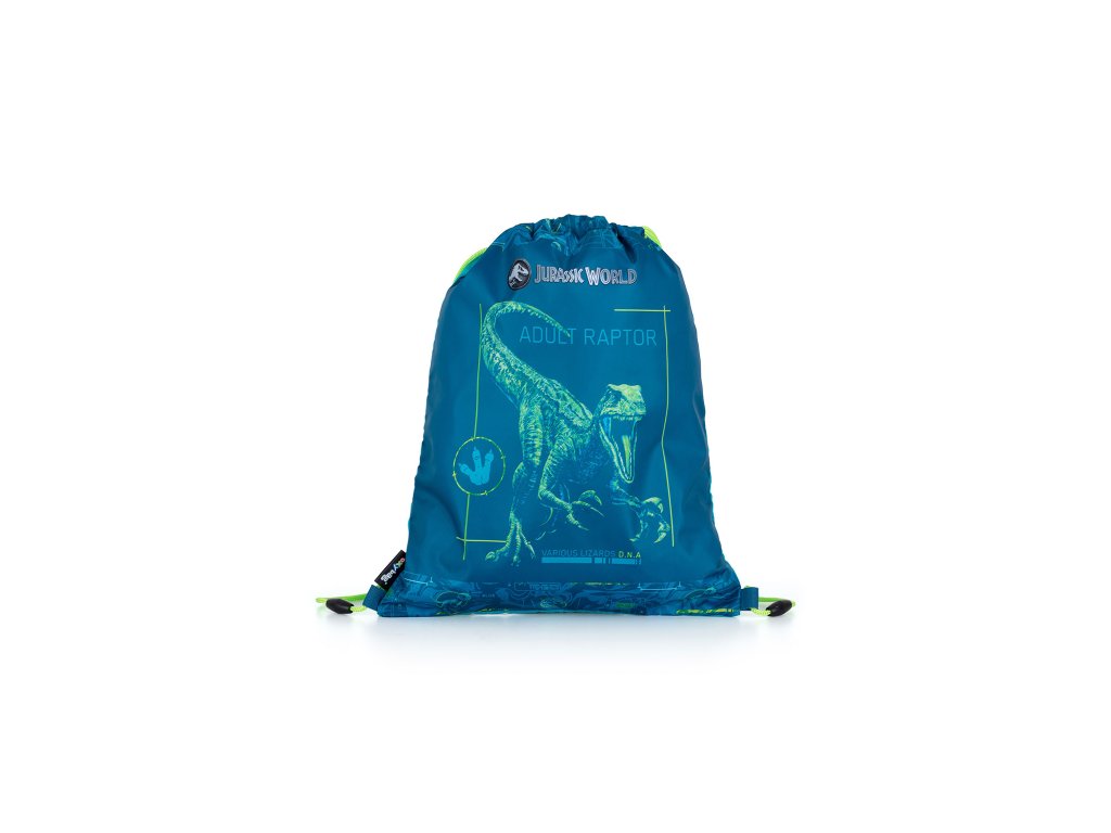 Sáček na přezůvky s motivem Jurassic World. Uzavírání stažením šňůrek, možnost nosit i na zádech nebo připevnit ke školnímu batohu. Materiál 100% polyester.Doplňkové parametry