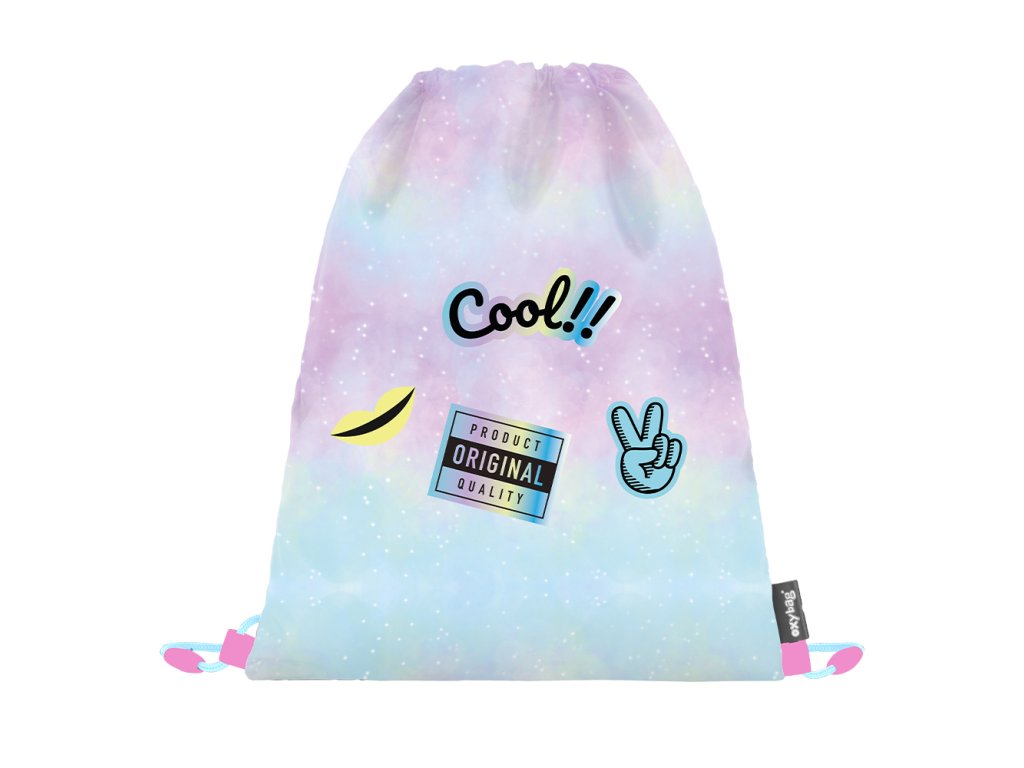 Sáček na přezůvky. Uzavírání stažením šňůrek, možnost nosit i na zádech nebo připevnit ke školnímu batohu. Materiál 100% polyester.Doplňkové parametry