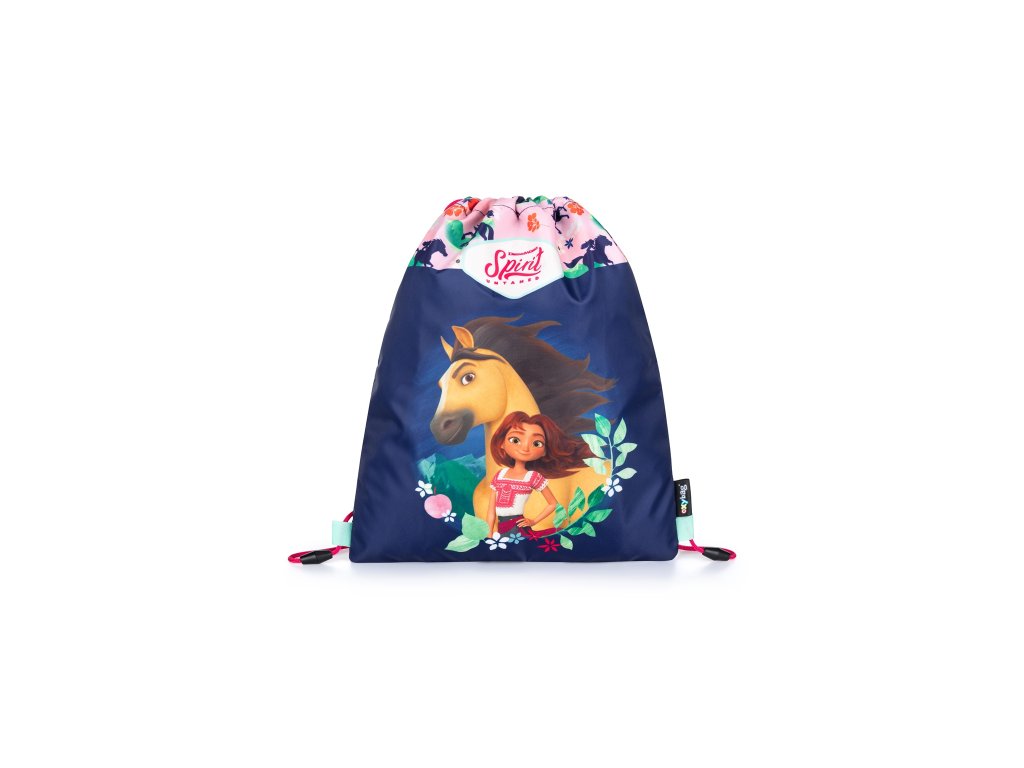 Sáček na přezůvky s motivem Spirit Riding Free. Uzavírání stažením šňůrek, možnost nosit i na zádech nebo připevnit ke školnímu batohu. Materiál 100% polyester.Doplňkové parametry