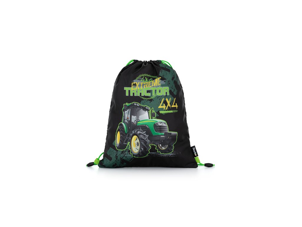 Sáček na přezůvky s motivem traktoru. Uzavírání stažením šňůrek, možnost nosit i na zádech nebo připevnit ke školnímu batohu. Materiál 100% polyester.Doplňkové parametry