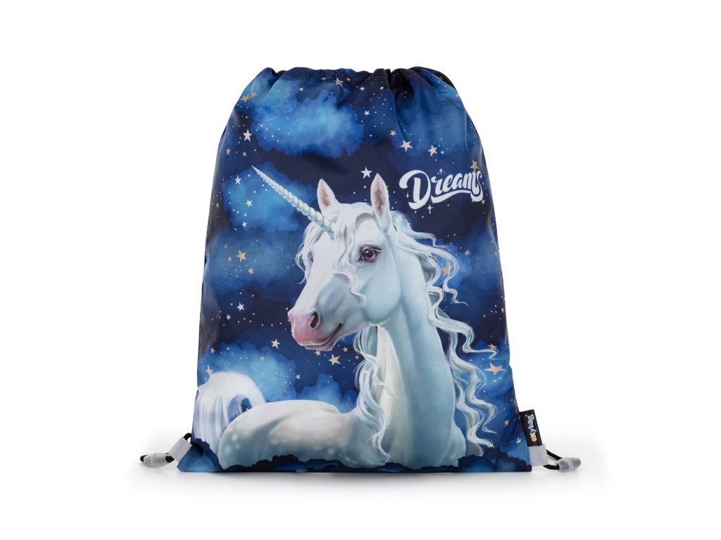 Sáček na přezůvky. Uzavírání stažením šňůrek, možnost nosit i na zádech nebo připevnit ke školnímu batohu. Materiál 100% polyester.Doplňkové parametry