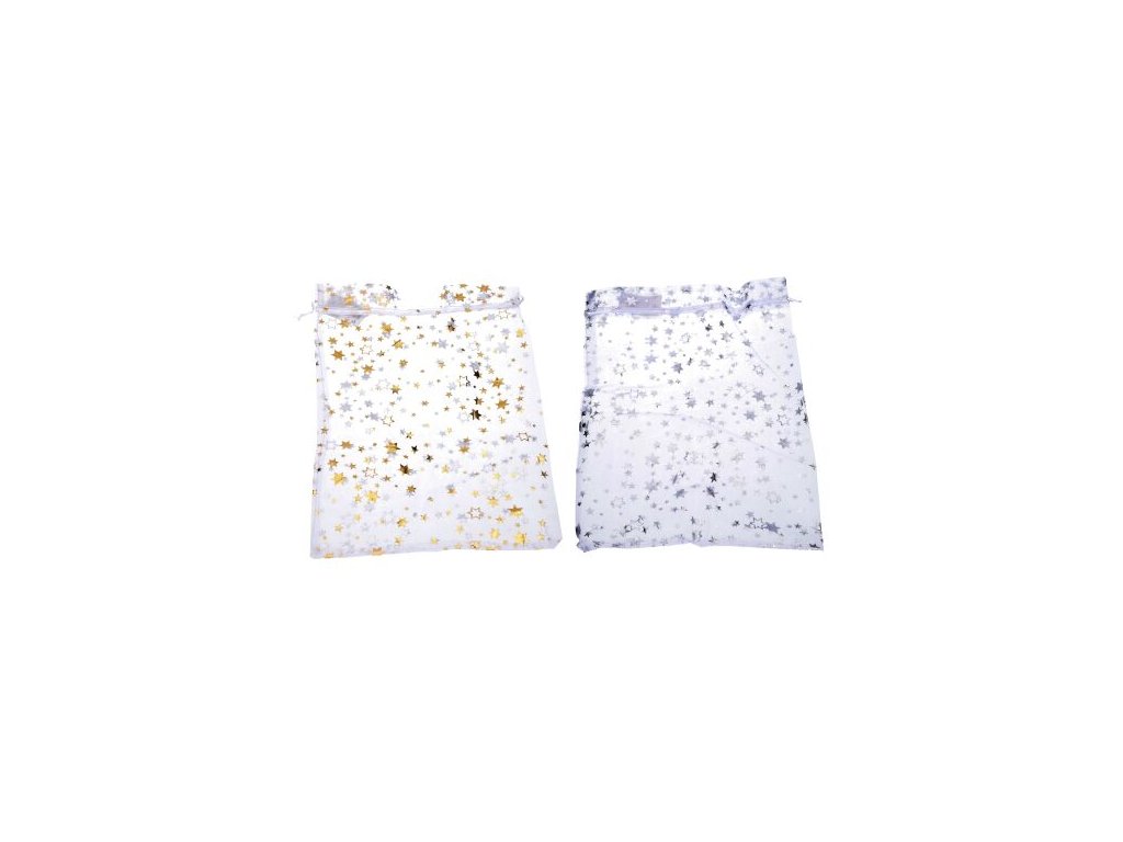Sáček ORGANZA Hvězdy o velikosti 25x35 cm Vánoce. 2 barevná provedení: zlatý, stříbrný Zasíláme dle skladových možností Cena za 1 ksDoplňkové parametry