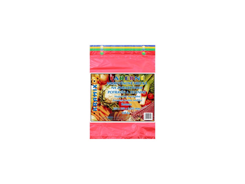 Mikrotenové sáčky 25 x 35 cm, 15 mic - barevné na trhací liště. Barevné mikrotenové sáčky jsou vhodné pro zamrazování potravin a zeleniny. Balení 150 ks.Doplňkové parametry