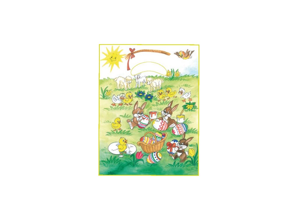 Veľkonočný šáčik s motívom zajačikov a kuriatok. Rozmery sáčika sú 205 x 320 mm. Predáva sa po jednom kuse.