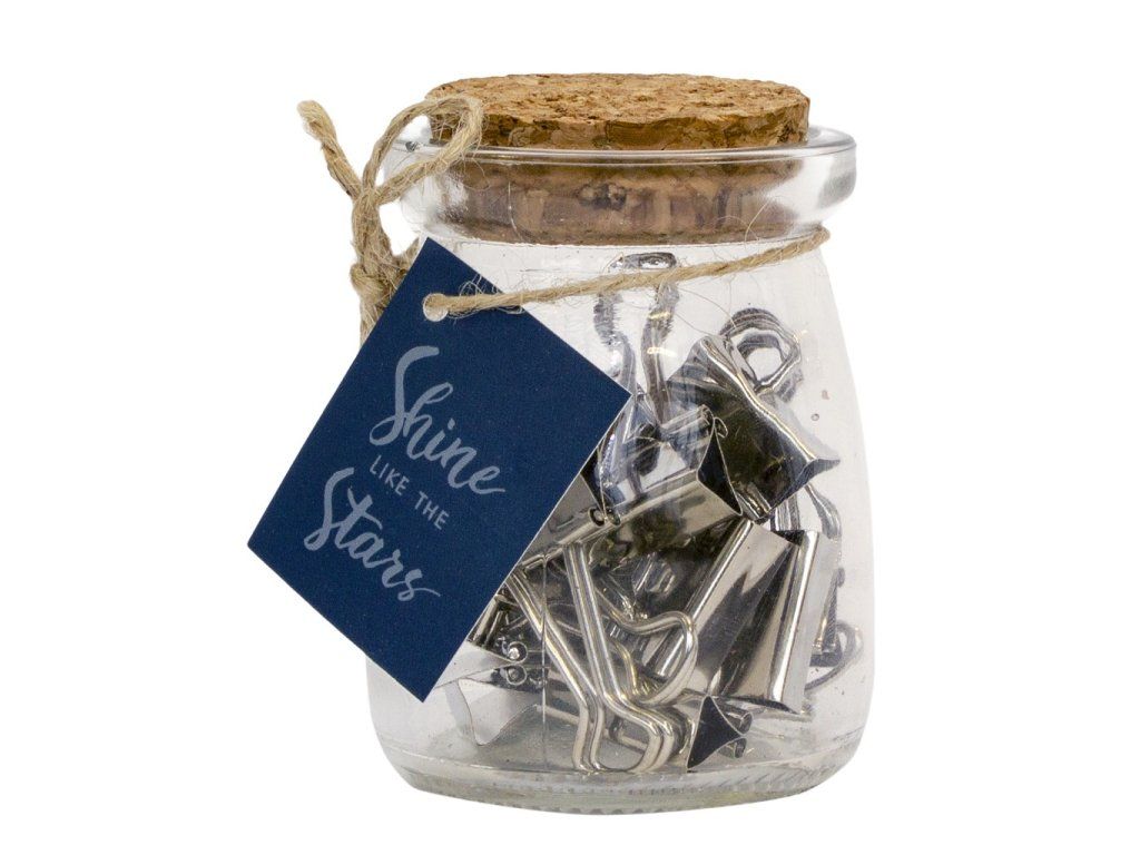 Sada 16 kancelářských sponek Pukka Pad úspěšné kolekce Glee obsahuje 16 pevných kovových kancelářských sponek ve skleněné dóre z korkovým uzávěrem vhodný a praktický doplněk na každý psací stůl Obchodní informace: - výrobce: Pukka Pad, Velká Británie - kolekce: Glee - výhradní zastoupení pro ČR: Reas-Pack s.r.o.Doplňkové parametry