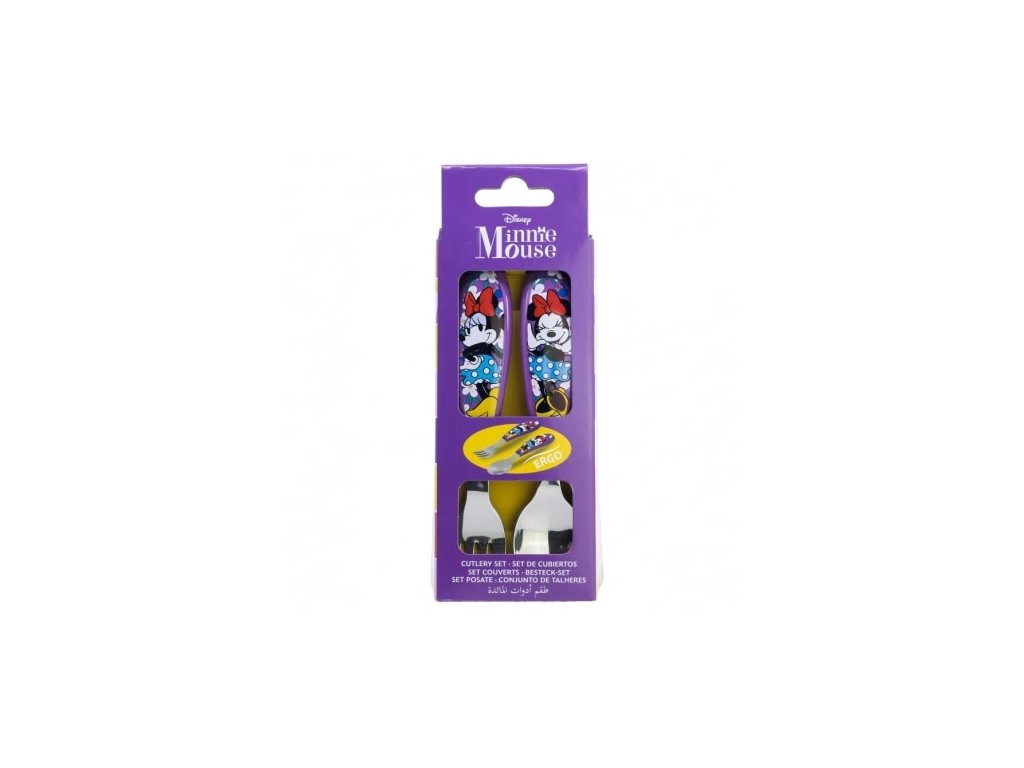 Sada skládající se z kovové lžíce a vidličky pro vaše dítě, aby se díky svému materiálu a zaoblenému tvaru naučilo používat příbory při jídle zábavným a bezpečným způsobem. Zdobené rukojeti. Motiv myška Minnie. Výška 9,4cm, šířka 4,6cm.Doplňkové parametry