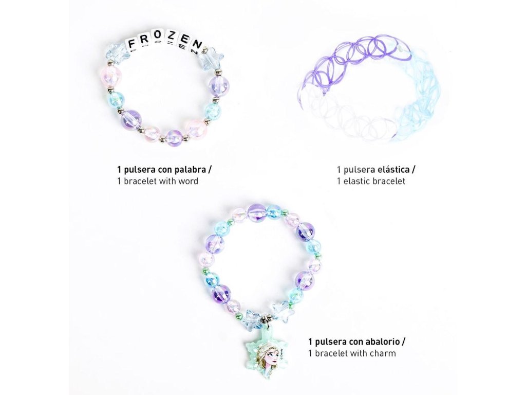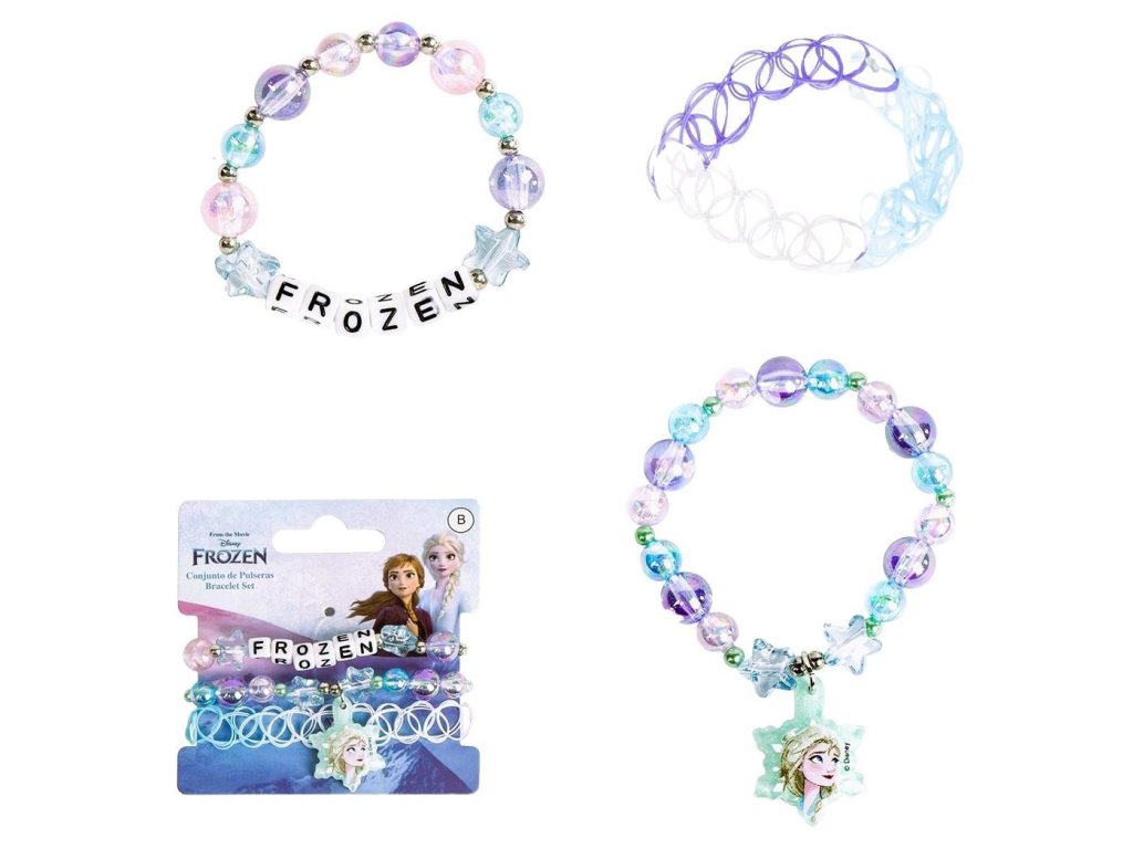 Sada 3 ks náramků s motivem Frozen. Rozměry balení: 9 x 9 cm. Pro děti od tří let. Výrobce: Cerda. ARTESANÍA CERDÁ, S.L.E-46850 LOleria, Valencia, Spaininfo@cerdagroup.comDoplňkové parametry