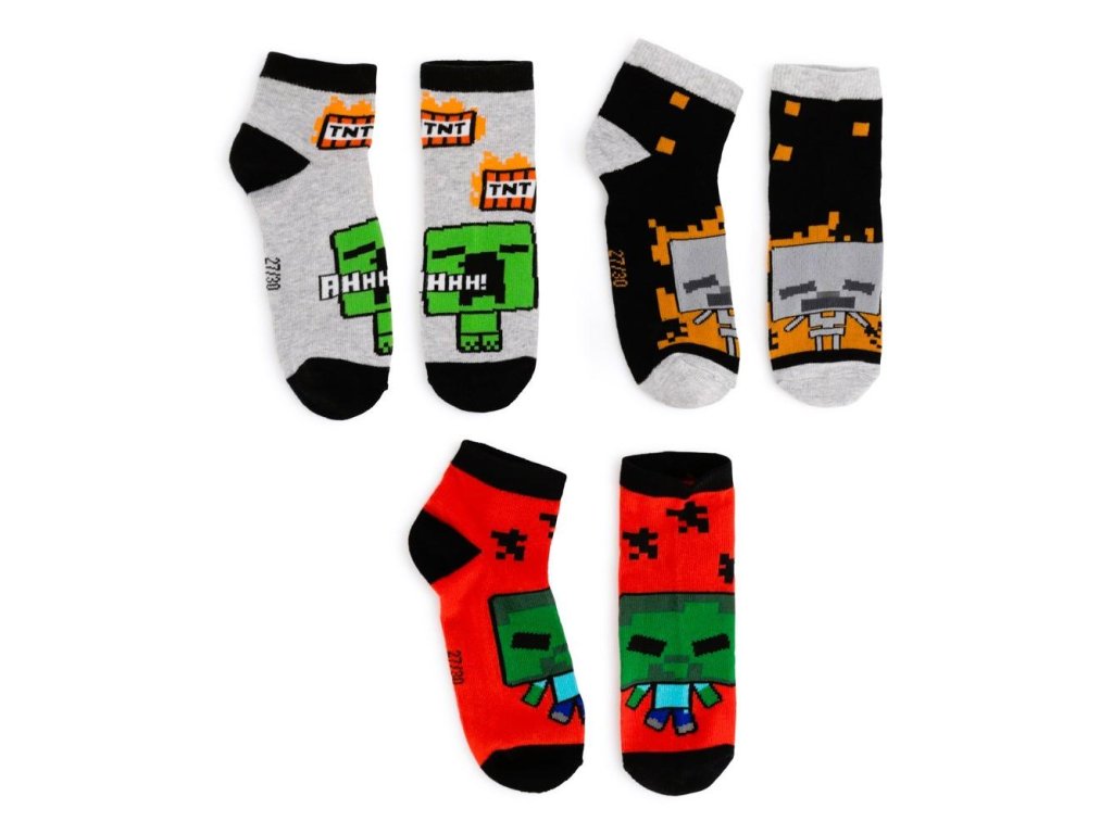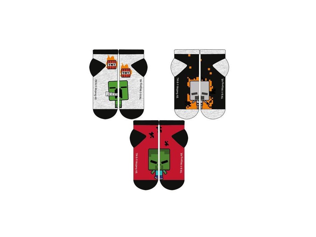 Nízké kotníčkové ponožky Minecraft. Materiál: 70% bavlna, 28% polyester, 2% elastan. Cena za 1 balení po 3 ks. Oficiální licence.