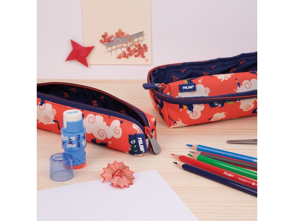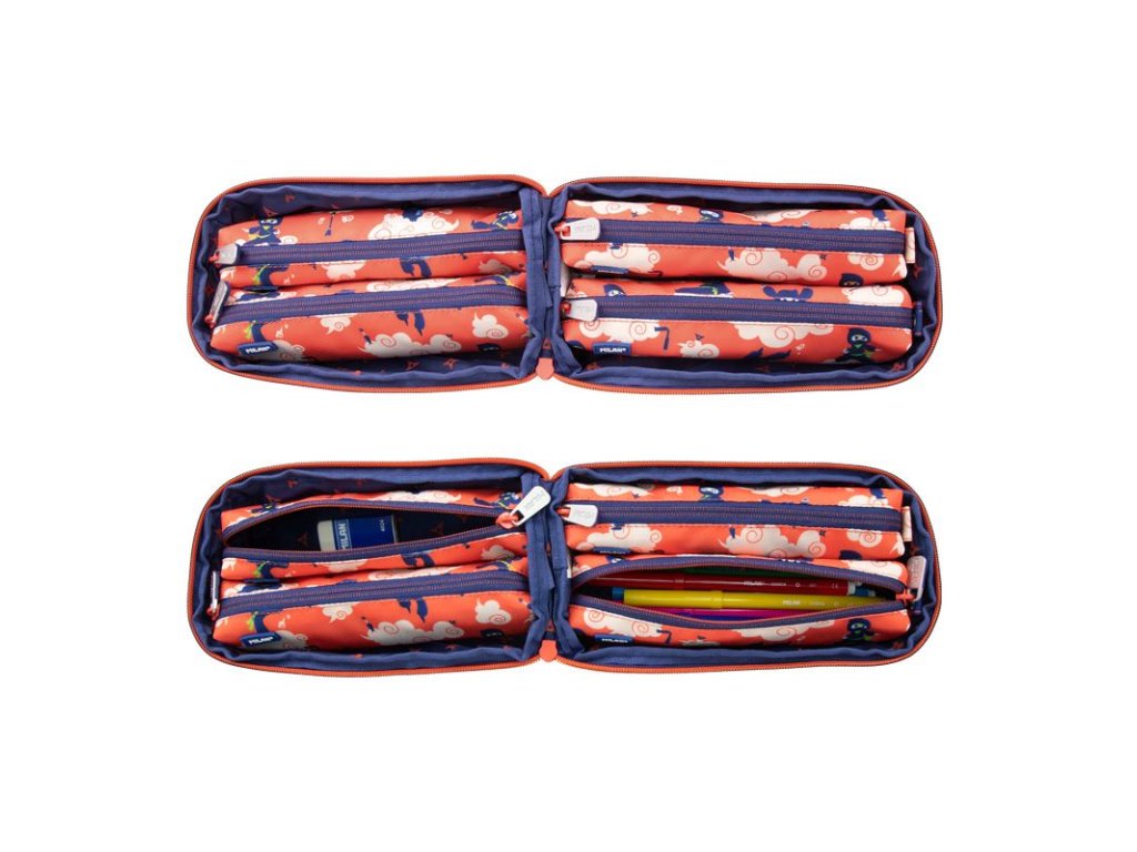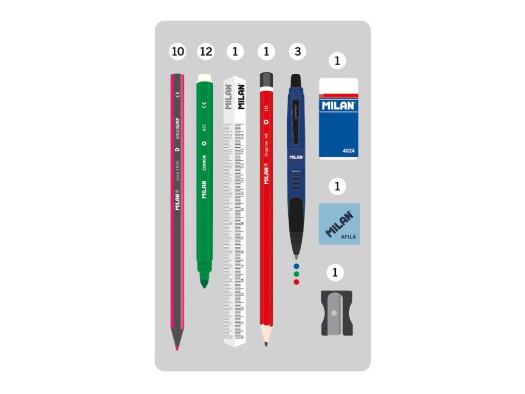 V netradičním penálu s velkým uchem pro snadné přenášení jsou umístěna 4 samostatná pouzdra. Pouzdra jsou vyjímatelná a každé má kvalitní zip s lehkým posuvem. 1. pouzdro obsahuje volně ložené trojúhelníkové barevné tužky 12 ks 2. pouzdro obsahuje volně ložená barevná pera 3 ks, tužku HB a pravítko s trojúhelníkovým tělem 3. pouzdro obsahuje volně ložené barevné fixy 12 ks 4. pouzdro obsahuje volně ložené struhadlo AFILA a gumu Takový způsob ukládání školních potřeb je rychlý a přehledný.Doplňkové parametry
