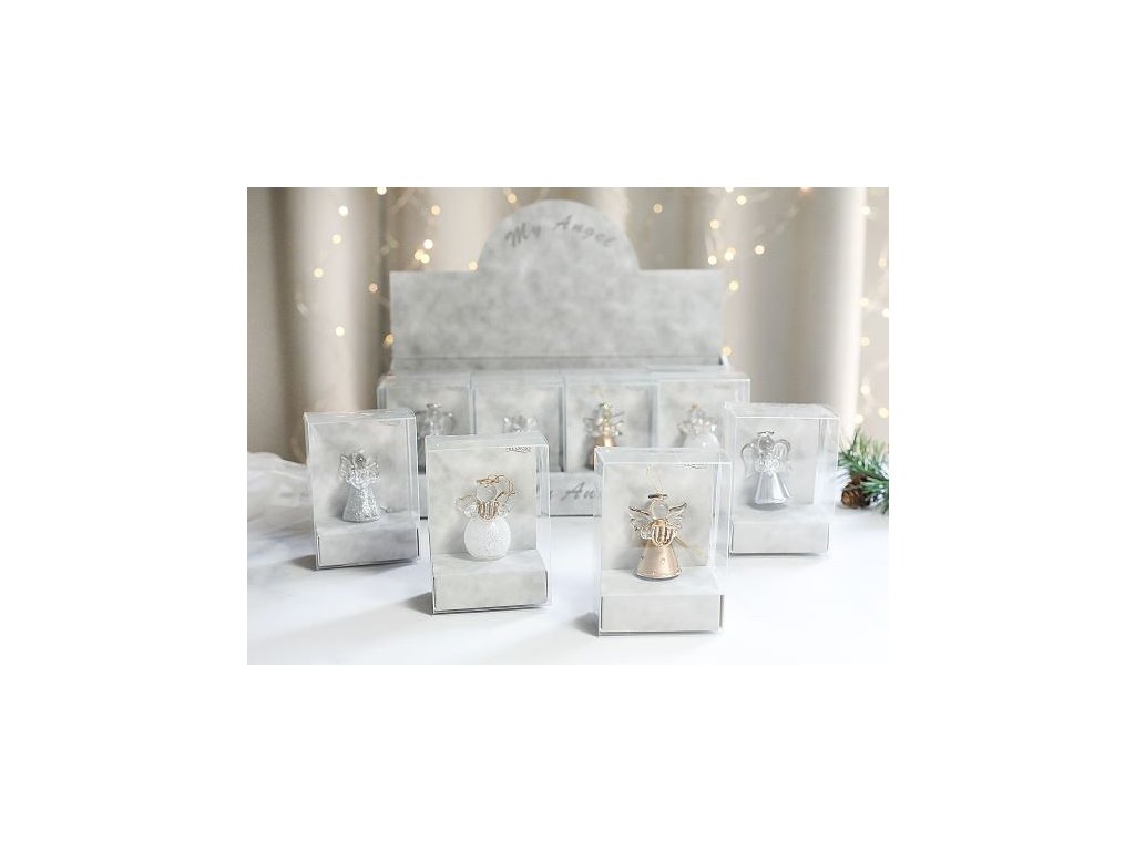 Popis produktu Skleněný anděl na zavěšení Výška 4,5 cm. Balení průhledné krabičce, displej 12 ksDoplňkové parametry